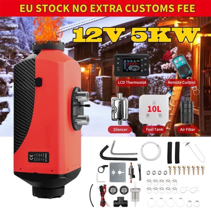 VEVOR Chauffage Diesel 8 KW, 12 V/24 V, Chauffage à Air Diesel Tout-en-un, Contrôle Par Application Bluetooth, Télécommande Et écran D'affichage, Alarme CO, Chauffage Diesel Portable Horizontal à