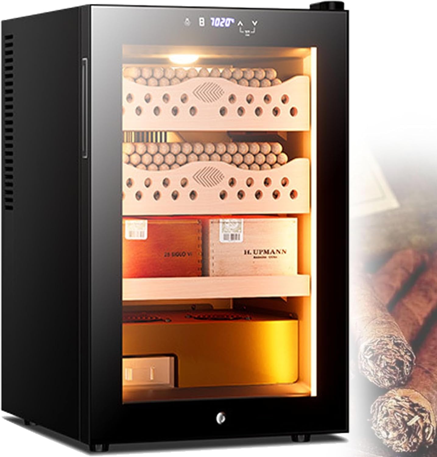 Un grand réservoir de circulation d'eau au fond réduit le besoin d'ajouts d'eau fréquents, garantissant des conditions de stockage optimales et durables et préservant parfaitement la saveur de vos cigares Fabriquée en cèdre espagnol, cette cave à cigares électrique peut contenir jusqu'à 300 cigares tout en préservant leur saveur et leur arôme. Silencieuse, elle régule la température et l'humidité et réduit la production d'ammoniaque, garantissant ainsi une conservation optimale de vos cigares Cette cave à cigares électrique en cèdre espagnol, fabriquée avec soin, dispose d'un contrôle intelligent de la température et de l'humidité et peut contenir jusqu'à 300 cigares. ★【Design intérieur】L'intérieur est construit avec des étagères en bois de cèdre de haute qualité, dont l'arôme naturel repousse les insectes et enrichit la saveur de vos cigares. ★ 【Apparence haut de gamme】Cette grande cave à cigares électrique de 50 litres est non seulement un puissant appareil de rangement professionnel, mais son design élégant, son éclairage LED froid et sa vitre en font également une vitrine haut de gamme, améliorant considérablement le goût et les conditions de conservation de votre collection de cigares Compatible avec la plupart des caves à cigares électriques - Des étagères et des séparateurs intérieurs stratégiquement conçus permettent de ranger des cigares de différentes tailles et de différents vins. Duokon boîte à cigares humidor Cave à cigares grande capacité 2 couches Elle est dotée de trois tiroirs amovibles en bois de cèdre avec poignées pour un accès facile, tandis que sa conception compartimentée permet un rangement professionnel et soigné des cigares Équipée d'un hygromètre numérique, d'un éclairage LED et d'un espace de rangement haut de gamme, elle est le cadeau idéal pour les amateurs de cigares. - Installation flexible : En tant qu'unité autonome, cette cave de 50 litres peut contenir de 200 à 300 cigares, ce qui la rend compacte et adaptée à une utilisation autonome dans divers environnements. Découvrez notre test complet de la cave à cigares électrique Klarstein El Presidente 50L : performance, design élégant et conservation optimale de vos précieux cigares Cave à Cigares électrique 50 L, Cave à Cigares Pour 300 Cave A Cigares Avis - Grâce à son panneau de commande tactile intelligent, les utilisateurs peuvent facilement régler et ajuster des paramètres tels que la température et l'humidité sans ouvrir la porte.