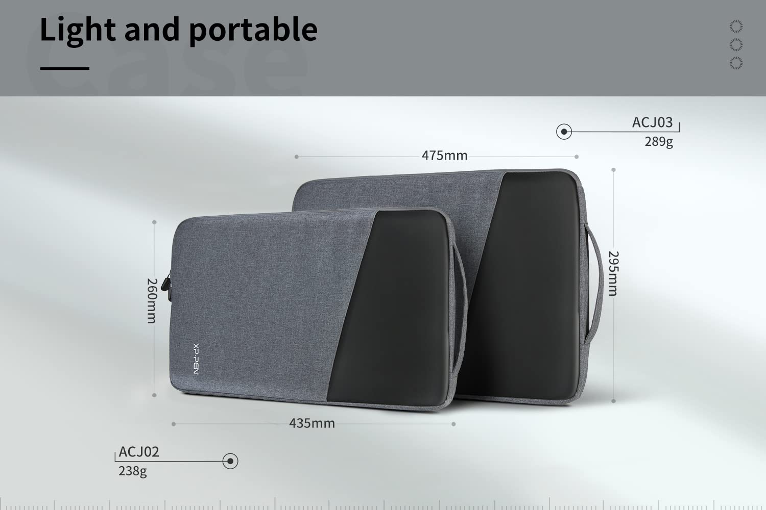 Offrant un espace de stockage pratique et élégant pour votre stylet, votre porte stylet ainsi que les cordons et autres accessoires. 【Tissu souple et rangement sécurisé】 Une protection conçue par une serge de coton doux, doublée d’une confortable peluche (typologie de textile) et sécurisé avec une fermeture éclair robuste. 【Un noir classique pour un style classique】 Choisissez l'étui qui correspond à votre style et laissez-vous séduire par votre palette de couleurs préférée. XPPen ACJ02/ACJ03 Sac de Protection | XP-PEN Boutique Officielle Ajoutez un peu de style à votre créativité quotidienne. AC48 Étui de Protection XP-PEN pour Tablette de Dessin et Stylo de 10 Artist 12, Deco 02 Sac Noir Classique Transport AC48 étui De Protection Pour Tablette Graphique | XPPen Tablette 12 Pouces L'étui est adapté pour les tablettes graphiques XP-Pen Artist12, Deco 01, Deco 02 et Deco 03. Composé d'un matériau imperméable et offre ainsi une protection complète pour votre tablette graphique
