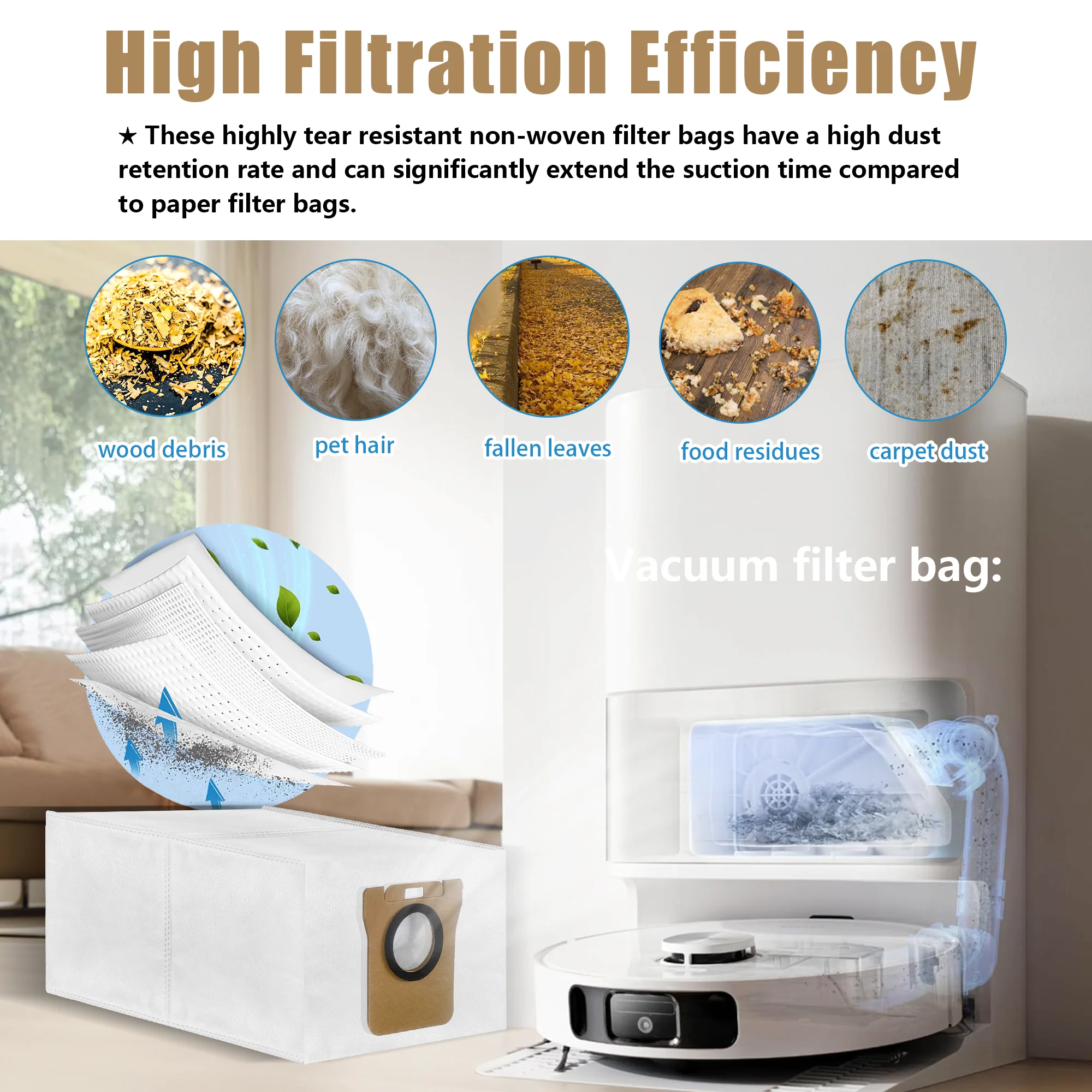 En utilisant notre sac à poussière L20 Ultra, les déchets et la poussière peuvent être ramassés et jetés facilement. Ces sacs à poussière de haute qualité de PromoHome offrent d'excellentes performances pour votre aspirateur robot. Avec un ensemble de 12 pièces, vous êtes assuré d'un nettoyage optimal pendant longtemps 12 sacs à poussière de haute qualité. Parallèlement, aucune poussière volante et pollution secondaire ne seront causées à l'espace de vie et au corps humain. 【Installation Facile et Achetez en Toute Confiance】Les sacs à poussière L20 Ultra sont parfaitement assortis, ce qui est facile à installer et à utiliser. 【Excellent Design Amélioré】notre sac à poussière Omni L20 Ultra a un design d'étanchéité puissant qui garantit la rétention de la poussière tout en résistant aux perforations et aux déchirures. Toute utilisation du nom de la marque ou du modèle est uniquement destinée à démontrer la compatibilité de ce produit. Lot de 12 sacs à poussière pour aspirateur robot X20+/X20 Plus 【Matériaux de Qualité Supérieure】Fabriqué en fibres soufflées fondues et en tissus non tissés. 【Compatibilité Parfaite】Les sacs à poussière de rechange sont compatibles avec Dreame X50 Ultra Complete/ X40/ L20 Ultra/ L50 Pro Ultra/ L10s Pro/ L10/ L10s/ L20, Xiaomi X10+/ X20+/ X20 Pro/X20 Max. C'est un choix économique pour compléter le pack de rechange des sacs à poussière pour vous. 2PCS pour X20 Pro-X20 Robot Aspirateur Brosse Principale Lavable PièCes... Sac Aspirateur Robot Dreame D10 Plus 12pcs Sacs à Poussière Compatible Avec Xiaomi X10+, X20+, X10/X20 Plus, Sac à Poussière Accessoires Compatible Dreame L10s Pro Ultra Heat, L20 Ultra, L10s Ultra, Sacs Filtrants Pour Aspirateur Robot Sac Aspirateur Dreame D10 Plus 【Excellent Rapport Qualité/prix】Le colis comprend 12 sacs à poussière de haute qualité compatibles avec Dreame X50 Ultra Complete/ X40/ L20 Ultra/ L50 Pro Ultra/ L10s Pro/L10/ L10s/ L20, Xiaomi X10+/ X20+/ X20 Pro/X20 Max.