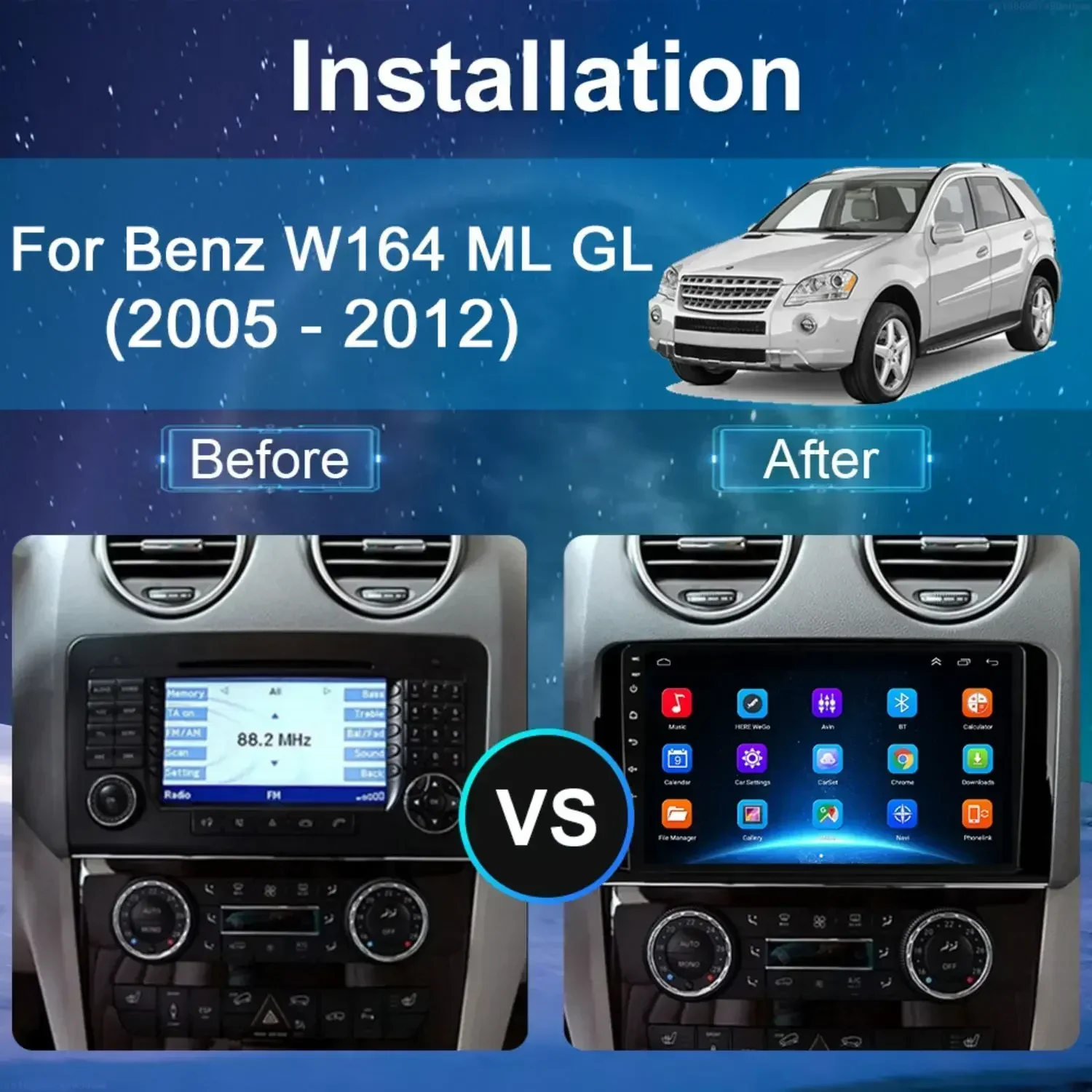 Bluetooth, FM/RDS et 32EQ ------ Grâce au Bluetooth intégré, la radio Carplay Android 2Din pour Mercedes Benz GL prend en charge les appels mains libres, etc. GOHHDL Radio Carplay pour Mercedes Benz ------ La radio stéréo tactile Carplay 2Din est compatible avec les modèles Mercedes Benz ML Klasse W164 ML280 ML350 ML500 2005-2011 et Mercedes Benz GL Klasse X164 GL320 GL350 GL450 2005-2011 Autoradios GPS Android 14.0 dédiés Mercedes-Benz avec écran tactile QLED. Intégration parfaite, Apple CarPlay, Android Auto, YouTube et navigation GPS. Compatible Classe A, C, E, GLA, GLC, GLE Autoradio Android 2 DIN 4G 64G 9 pour Mercedes-Benz ML GL : véhicules compatibles : pour Mercedes-Benz Classe M W164 2005-2012 ; Mercedes-Benz ML 280/ML 300... La radio FM/RDS de haute qualité permet de mémoriser jusqu'à 30 stations. Android 15 pour Benz GL ML W164 ML350 ML500 X164 2005-2012 2K QLED Grâce à la fonction GPS, elle prend en charge les modes en ligne et hors ligne. SWC et caméra de recul ------ L'autoradio Android 2Din pour Mercedes Benz W164 comprend une caméra de recul AHD. Poste Carplay Voiture 8 Core 4G+64G Sans Fil Carplay Android Autoradio Pour Mercedes Benz ML GL W164 ML350 ML500 GL320 X164 ML280 GL350 GL450 9 Pouces Radio Android Auto GPS WiFi Mirror Link Bluetooth FM Radio Wifi Une fois connecté, vous pouvez facilement passer des appels, écouter de la musique, naviguer et plus encore grâce à la commande vocale 1 Carplay & Android Auto 2 Mirror Link 3 GPS & WIFI 4 Bluetooth & FM/RDS & 32EQ 1 HD Screen 2 Split Screen