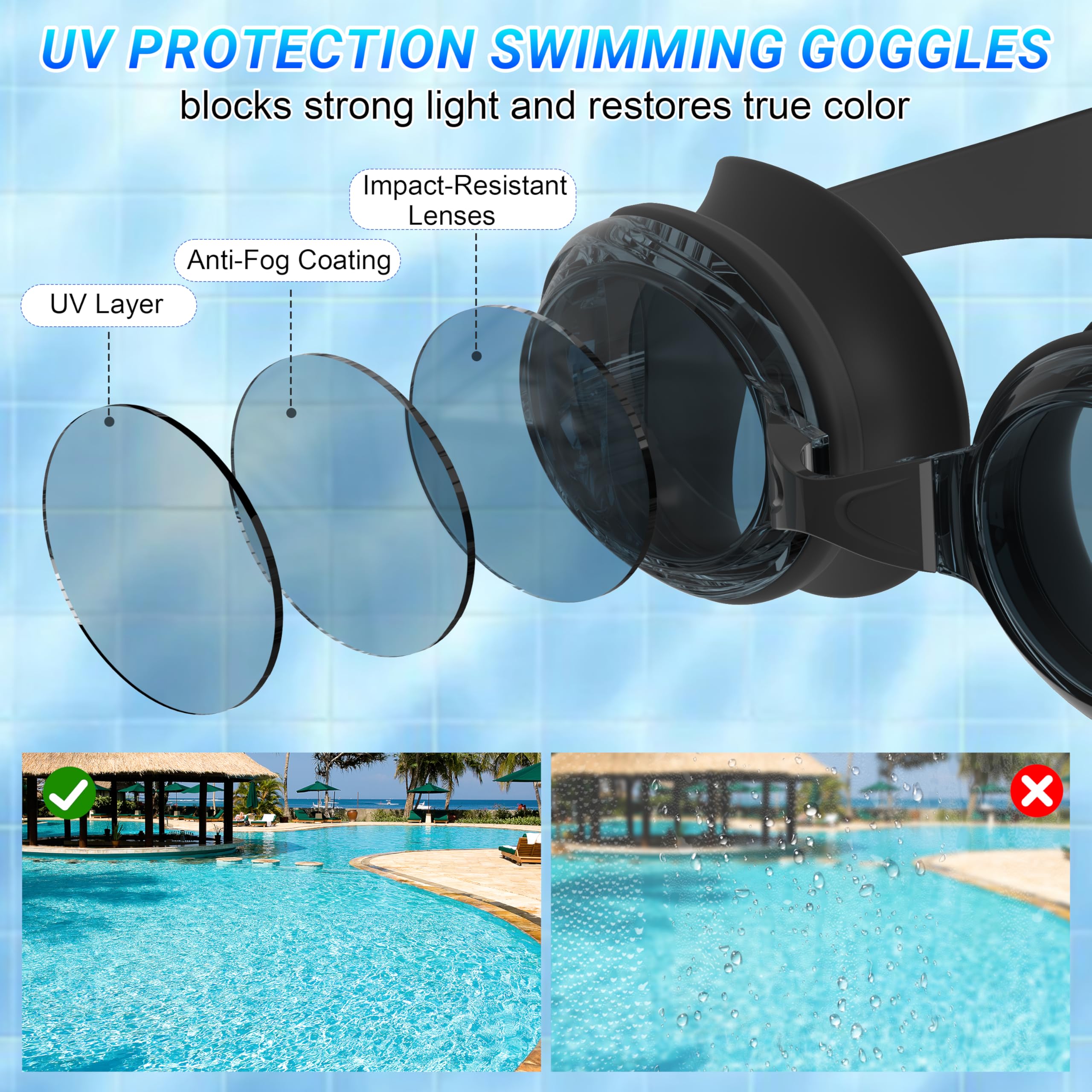 Ces Lunettes natation homme/femme aux débutants et entraînements intensifs Achetez Ambienden Lunettes de Natation, Claire Vision Lunettes de Natation Anti-buée, Protection UV, Joints en Silicone, Ajustements Rapides, Unisexes Pour Adultes-DD-BK La technologie avancée filtre 99% des rayons, lunette natation homme femme protégeant vos yeux en que ce soit en eau libre ensoleillée ou bassin couvert. Ces lunettes de piscine femme/homme permettant de capturer plus de détails dans l'eau et de profiter pleinement de la beauté de la nature Des lunettes natation adulte aussi élégantes qu’indestructibles Lunettes De Nage Réglables Lunettes Anti Buée Decathlon Ambienden Lunette Piscine Adulte Et Jeunes – Unisexes Lunettes De Lunettes De Natation Decathlon Lunettes Natation Adultes Anti-buée ÉTANCHÉITÉ ET CONFORTABLE : Lunette piscine monture silicone 3D + pont nasal TPR réglable + double sangle Y anti-glisse. ÉLÉGANT ET DURABLE: Avec leur système de clips rapides et leurs verres transparents, ces lunette natation adulte allient praticité et esthétique. Disponibles en multiples coloris, leurs lentilles en PC anti-choc résistent aux rayures pour une transparence durable. Même si vous le portez pendant une longue période, il n'appuiera pas sur votre tête et il n'y aura pas de marques d' yeux de panda après avoir retiré les lunette de piscine Lunettes de natation pour adulte, anti-UV, sans fuite, anti-buée, vision claire, lunettes de vue large pour femmes, adultes, hommes, jeunes ANTI-BUAGE DURABLE : la surface des verres des lunettes de natation est traitée avec un revêtement antibuée, de sorte que vous avez toujours une vue claire sous l'eau. Ambienden Lunettes De Natation Hommes Femmes | éTanches AntibuéE Vision Claire Lunette Piscine Adulte Jeunesse GéNéRal | Professionnelles Confortables Avec Pont...