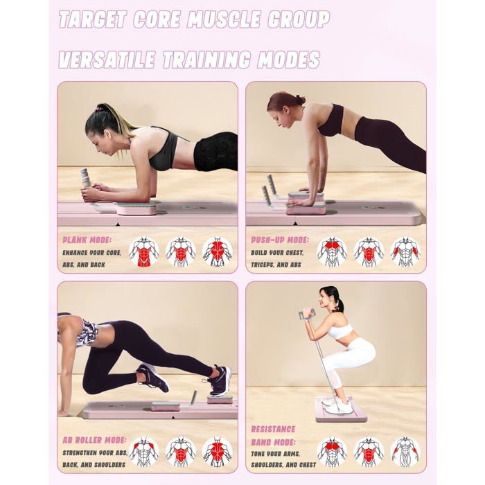 Elle est durable et offre une excellente capacité de charge. ⏱️Support de téléphone intégré et minuterie intelligente : cette pilate reformer facilite la personnalisation de votre routine en permettant de visionner des vidéos d'entraînement pendant l'exercice, afin de maximiser vos résultats et rester motivé. Kit Réformateur de Pilates, 5 in 1 Machine de Réformateur de Pilates avec Compteur LED, Rouleau à Rebond Automatique, Planche d'exercice Multifonction pour Exercices à Domicile (Noir Description du produit Apportez une séance d'entraînement complète en studio à la maison avec ce appareil de pilates et de core pliable, conçu pour l'entraînement du corps entier, la stabilité maximale et la facilité d'utilisation optimale. Grâce à la conception multifonctionnelle, vous combinez pilates, entraînement du core, entraînement en force et mobilité dans un seul appareil... Conçue pour éviter les déformations et les dommages, elle garantit une utilisation durable. Test du réformateur de pilates pliable avec tremplin pour débutants 🧳Portable et pliable : cette machine pilate maison appareils pliable est facile à transporter et à ranger, vous permettant de vous entraîner à tout moment et en tout lieu, sans prendre de place. Idéale pour s'entraîner à la maison, au bureau ou en extérieur, elle vous permet de gagner du temps et de l'argent en salle. Reformer Pilates - Planche De Pilates - Appareil De Pilates Multifonctionnel Pour La Maison Planche De Pilates Pliable Avec Appareil Pour Les Abdominaux Retour Automatique Et Cable De Tension Set Reformer Pilates Elle vous permet de travailler facilement vos muscles abdominaux, d'améliorer vos résultats et de réduire la pression corporelle. Il combine Pilates et musculation pour améliorer l'endurance, solliciter les muscles profonds, le grand fessier, les abdominaux obliques, le bas du dos, etc. et améliorer l'équilibre et la force musculaire.
