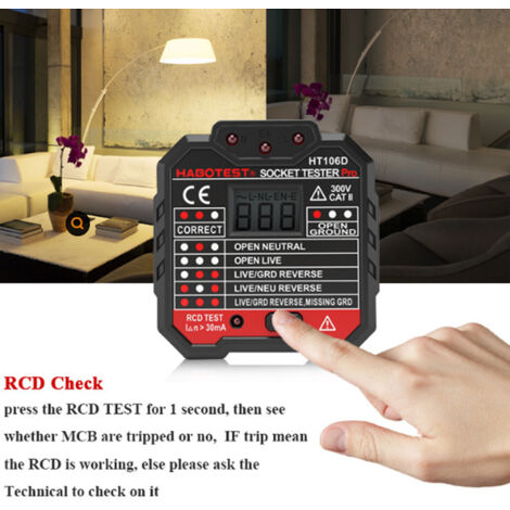 Que vous soyez un particulier ou un professionnel,cet outil essentiel vous aidera à prévenir les accidents électriques et à garantir la sécurité de votre environnement. Il combine un affichage numérique HD pour une lecture claire,une détection immédiate des fuites et une multitude de fonctions de test. Il vous suffit d'appuyer sur un bouton pour savoir si votre circuit est sécurisé. Facilité d'Utilisation:Avec une interface intuitive et une utilisation simple, notre testeur électrique ne nécessite aucune formation spéciale. Application Universelle: Idéal pour les inspections de sécurité électrique à domicile, à l'école, dans les usines et les bureaux, notre testeur de prise répond à la plupart des besoins de test électrique. Testeur De Prise électrique YOJOCK Testeur De Prise, Testeur De Circuit Electrique Courant Automatique Détecteur De Tension De Polarité 90-250V, Détectez 6 Conditions De Câblage/Test RCD/Affichage De Tension, CAT.II 300V Kaiweets Testeur Sécurité et Protection contre les Fuites: Grâce à un simple bouton, vous pouvez détecter immédiatement les risques de fuite dans le circuit électrique et prévenir les chocs électriques. Son design compact et léger le rend facile à transporter pour toutes vos interventions. Avec notre testeur de prise,vous pouvez facilement vérifier la tension, la polarité,la présence de terre et même tester le RCD. Il peut détecter 8 conditions de câblage et tester le RCD, le rendant indispensable pour les vérifications électriques approfondies. Ce testeur de prise est l'outil idéal pour vérifier le câblage des prises standard à 3 fils et des prises protégées par RCD (90-250V AC). Que vous soyez un électricien professionnel ou un amateur de bricolage, ce testeur fournit des résultats rapides et fiables Vous vous inquiétez de la sécurité de vos circuits électriques à la maison? Nous savons tous que les pannes électriques et les chocs sont des risques constants, surtout avec des appareils vieillissants ou mal installés. Il détecte 8 conditions de câblage différentes, vous permettant d'identifier précisément les problèmes. Notre testeur de terre vérifie la présence de fuites et vous alerte en cas de danger, assurant ainsi votre sécurité et celle de votre famille. Compatible avec les prises européennes, il est idéal pour les voyageurs et les propriétaires soucieux de la sécurité de leur logement. Test RCD: Ce testeur électrique teste les dispositifs RCD en simulant une condition de masse non connectée, il fonctionne sur les prises RCD et confirme le fonctionnement des dispositifs de protection de masse non connectés Lot de 2 testeurs de prise avec test RCD et écran LCD de voltage - Indicateur lumineux - 198-250 V/50-60 Hz Spécifications Type : Testeur de prise Matériau : ABS Quantité : 1 pièce Couleur : noir Piles : 2 piles AAA 1,5 V (non fournies) Courant du disjoncteur différentiel : plus de 30 mA/plus de 5 mA Tension nominale : 0,1V-250V/40-1 KHz Prise : UE/US Dimensions : 64,5 x 64,5 x 58,2 mm Poids net : 140g Contenu : 1 testeur de prise