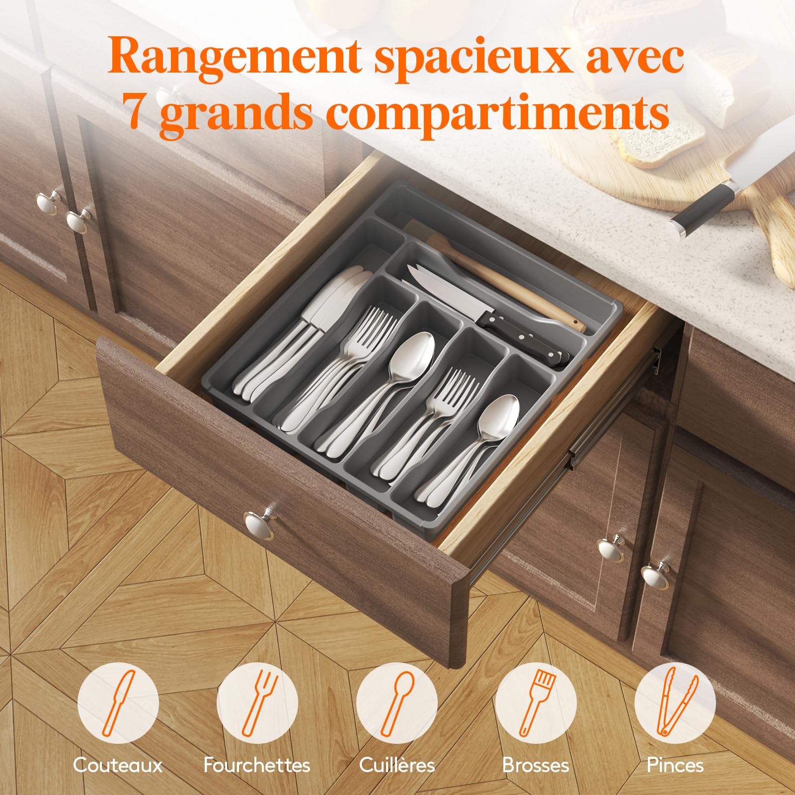Contenu de l'emballage : 1 étui de rangement pour ustensiles. Caractéristiques : * Nom de la pièce : étui de rangement pour ustensiles. Description de Boîte de rangement pour couverts, organiseur de couverts avec couvercle à fermeture éclair Séparateurs ajustables : 4 séparateurs ajustables vous permettent de personnaliser les compartiments pour cuillères, fourchettes ou couteaux, pour un tiroir bien rangé Range Couvert avec Couvercle, Boite de Rangement Couverts Cuisine avec 5 Compartiments, campeur... Design robuste : fabriqué à partir de polyester résistant et de carton solide, cet étui offre une protection fiable pour vos ustensiles pendant le stockage et le transport. Gowee Boîtes De Rangement En Chine à Coque Rigide, étui De Couvercle transparent : la fenêtre transparente sur le couvercle permet de trouver facilement vos ustensiles rapidement sans avoir à fouiller dans la boîte. Solution de rangement : cet étui n'est pas seulement destiné aux couverts, il peut également contenir divers petits articles tels que des stylos et des accessoires dans plusieurs zones de votre maison. Boîte de rangement pour ustensiles en acrylique, organisateur de réigérateur, séparateurs de tiroir pour vêtements, rangement de sacs Ziplock, organisateur de tiroir à épices - Chine Plateau de rangement pour réigérateur et * Dimensions : 43 x 29 x 8 cm., Couleur : gris. Caractéristiques : * Rangement personnalisable : la boîte de rangement pour couverts comprend quatre séparateurs réglables, vous permettant de créer des compartiments personnalisés pour les cuillères, fourchettes et couteaux. *Utilisation polyvalente : à l'exception des couverts, cette solution de rangement peut accueillir divers petits articles tels que des stylos, des bijoux et d'autres accessoires, ce qui la rend adaptée pour une utilisation dans les cuisines, les salons, les chambres et les buanderies.