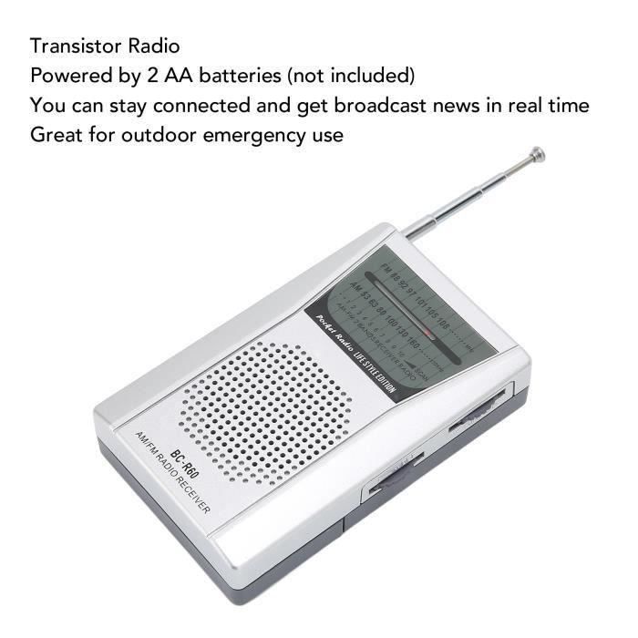 Sa taille compacte et sa légèreté la rendent facile à transporter., 2., Antenne télescopique pour une couverture complète de la bande : l'antenne télescopique intégrée permet à cette radio de recevoir des signaux sur une large gamme de fréquences, y compris les bandes AM et FM, vous ainsi de pouvoir capter vos stations de radio préférées ou de rester informé des émissions., 1., Radio de poche rétro portable : cette radio météo portable est conçue pour être compacte et portable, vous permettant de l'emporter facilement avec vous partout où vous allez, en particulier en cas d'urgence ou lorsque vous devez rester informé des dernières conditions météorologiques., 4., Haut-parleur clair pour un son de qualité : Équipée d'un haut-parleur, cette radio offre un son clair et puissant, vous permettant d'écouter facilement des émissions ou de la musique. L'erreur de mesure permis est de +/- 1-3 cm., 3., Alimentation par piles pour plus de commodité : Alimentée par piles, cette radio ne nécessite pas de prise de courant, ce qui la rend idéale pour les activités de plein air, le camping ou les situations où l'électricité n'est pas toujours disponible. Que vous écoutiez vos émissions préférées ou que vous vous fiiez aux émissions, cette radio vous garantit de ne manquer information importante., 5., Conçue pour les personnes âgées : Grâce à son design convivial et à commandes intuitives, cette radio est destinée aux personnes âgées. PUSOKEI Petite Radio, Radio AM FM, Radios Portables étanches, Radio de Douche Musicale, Radio avec Haut-Parleur, Piles AAA Facile à utiliser, leur permet de profiter de leurs programmes radio préférés ou de rester connectés en cas d'urgence, sans tracas ni confusion. Radio AM FM Portable Mini Radio De Poche Multifonctionnelle à Piles Pour - TV Son Photo Radio De Poche à Piles AA Yunseity Radio AM FM De Poche, Radio à Transistor Portable à Piles, Alimentée Par 2 Piles AA Radio De Poche Pour Personnes âgées Conçue avec trois boutons de commande - bouton de réglage, bouton de volume, interrupteur de commutation de bande / alimentation, la petite radio portable est assez facile d'utilisation.L'indicateur de syntonisation vous rappelle les stations de radio disponibles. Voyez comme c'est simple