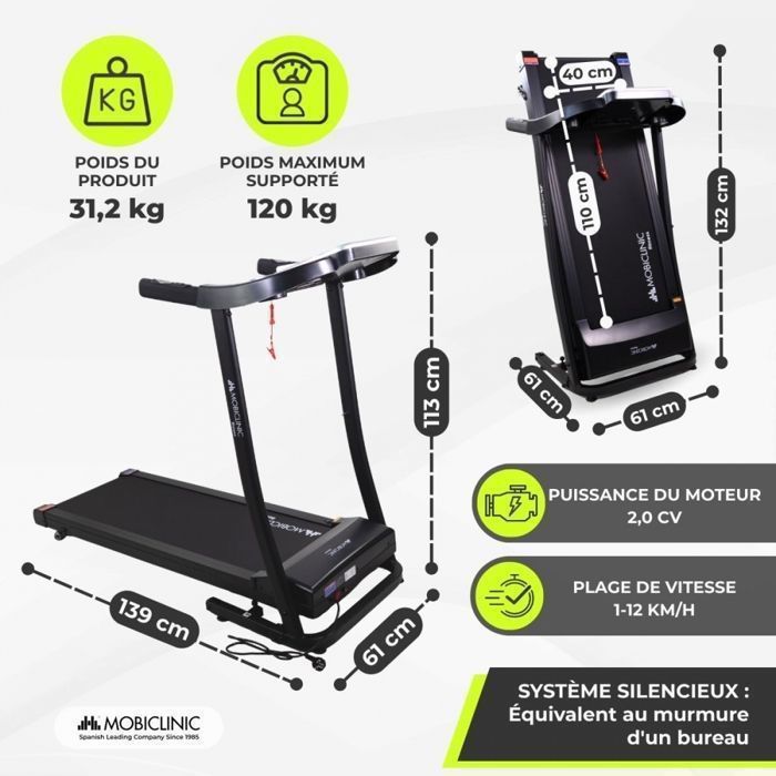 Votre formation passera très vite. Pliage innovant en une seule étape. Idéal pour mettre dans n'importe quelle pièce, sous le lit,., ., ., Affichage LED avec boutons rétro-éclairés sur le repose-mains. Support de téléphone Profitez de vos vidéos préférées pendant que vous vous entraînez. Tapis de course Clover Fitness Tapis de Course Intelligent A8 - Vitesse maximum 13 km/h Moteur puissant, efficace et silencieux., 2,25 CV Télécommande avec colonne incluse. Equipement de suspension réparti sur toute la sangle pour absorber et réduire l'impact sur les genoux. Surface de diamant Les 5 couches ajoutent de la résistance à l'usure, isolent l'acoustique, ont un support de haute résistance, amortissent les impacts et ajoutent une couche de compression. Utilisez-le pendant que vous travaillez, écoutez votre musique ou regardez votre série préférée. Tapis de Course Pliable avec Bluetooth CITYSPORTS tapis de course est une marque professionnelle de tapis de course pour la maison. Notre tapis de course pliable est quip d'une main courante et d'un support pour tablette 360 , ce qui vous permet de poser votre IPAD sur le support Affichage avec commandes tactiles. Design pliable pour un rangement facile en une seule étape : économisez de l'espace en rangeant la machine sous le lit ou le canapé. Tapis de Course Intelligent Clover Fitness T4000 Pro - Pliable... Chenille à 4 plis avec une surface à grain de diamant innovante, durable et antidérapante. Vitesse jusqu'à 12 km/h pour travailler la vitesse et la résistance. Contrôlez votre entraînement à tout moment. De plus, vous pouvez utiliser votre mobile pour contrôler votre entraînement en le connectant à votre montre. Tapis De Course Inclinaison 15 Tapis De Course Intelligent Pliable, Haut-Parleur Bluetooth Intégré, Télécommande, Machine De Marche Et De Course Pour L'exercice Physique à Domicile, 133x69x107cm Tapis De Course Pliable Inclinable Caractéristiques: Pourquoi acheter le tapis de course intelligent Matrix T4000 ? Nouveau tapis de course au design innovant dans le monde du Home Fitness. Télécommande et également tactile sur le repose-mains : vous pouvez allumer/éteindre la machine ou régler la vitesse en utilisant la télécommande ou le panneau de commande tactile. Tapis de course intelligent Clover T4000 Puissant moteur silencieux de 2,25 ch : fournit un environnement silencieux tout en économisant de l'énergie.