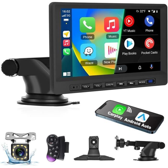 RADIO FM INTÉGRÉE & NAVIGATION EN TEMPS RÉEL: Écoutez vos stations FM préférées et profitez d’un guidage GPS fluide via Apple Maps, Google Maps ou Waze, pour une conduite plus sûre et plus agréable FONCTION DE MIROIR D’ÉCRAN: Affichez le contenu de votre smartphone en temps réel sur l’écran du poste radio via la fonction Mirror Link — idéal pour lire des vidéos, utiliser des apps ou partager votre écran ASSISTANT VOCAL INTÉGRÉ: Contrôlez votre autoradio par la voix (Siri & Google Assistant) envoyant des messages, lancez une navigation ou passez un appel sans quitter la route des yeux With Backup Camera Install TOUTBIEN CarPlay Voiture, Portable Autoradio Avec 7 U00c9cran Tactile HD, CarPlay & Android Auto Sans Fil, Bluetooth Mains- Libres, FM, Mirror Link, Navigation GPS, Siri, G0ogle Assistant, FM Radio 🚗 Écran CarPlay / Android Auto 7" – Neuf & Jamais Utilisé – Envoi uniquement 📦 Boostez votre conduite avec cet écran tactile HD 7 pouces, CarPlay & Android Auto sans fil, compatible iOS & Android Lorsque vous passez en marche arrière, l'écran de 7 pouces affiche automatiquement les images capturées par la caméra, accompagnées de lignes de guidage dynamiques pour un stationnement plus précis et sécurisé Stéréo De Voiture Portable Avec Carplay Sans Fil Et Android Auto, Lecteur Multimédia À Écran