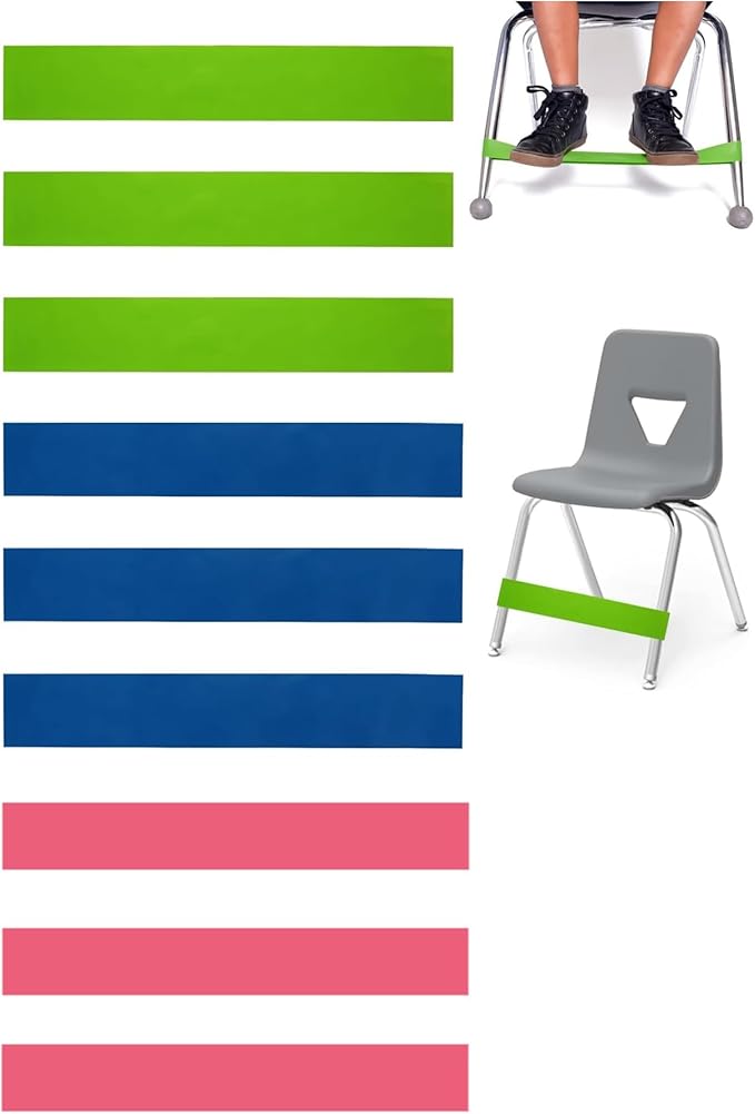 Parfaites pour l'école ou la maison, placez simplement vos pieds sur les bande élastique pour une stimulation sensorielle silencieuse sans bouger les pieds. 6PCS Bande Elastique pour Pieds de Chaise TDAH pour Enfants, Élastique Chaise TDAH, Bande Elastique Musculation, Convient Aux Enfants Hyperactifs, pour Le Fitness et Le Yoga Ce produit est portable, confortable, durable et élégant. Conception spéciale : Ces bandes anti-stress soulagent le stress et aident les enfants à se concentrer. bande elastique musculation Elles améliorent efficacement l'activité physique et étirent et font travailler les muscles de tout le corps. Elles permettent aux élèves et aux enfants de bouger librement, préservent la sécurité et le calme de la classe et favorisent la patience. Elle est parfaite pour une utilisation en classe ou à la maison. Cordon Élastique Pour Chaise Longue, Cordon Élastique Pour Chaise À Bandes de résistance style chaise : Polyvalentes, élastique sport elles conviennent aussi bien aux enfants actifs qu'aux adultes pour le fitness et le yoga. Convient pour : Cette bande de résistance est adaptée à de nombreux usages, non seulement pour les enfants actifs, mais aussi pour les adultes qui l'utilisent pour le fitness et le yoga. Matériau fiable : Ces bandes chaise colorées sont fabriquées en TPE, offrant une grande élasticité et résilience, idéales pour l'exercice. Hamac Indoor Enfants Balançoire Pour Autistes Tdah Intégration... équipement Classe Funver 6PCS Élastique Chaise Tdah,Bande Elastique Pour Chaise Sangle TPE Fitness Yoga Placez simplement vos pieds sur la bande pour une stimulation sensorimotrice silencieuse, et dites adieu aux pieds agités.