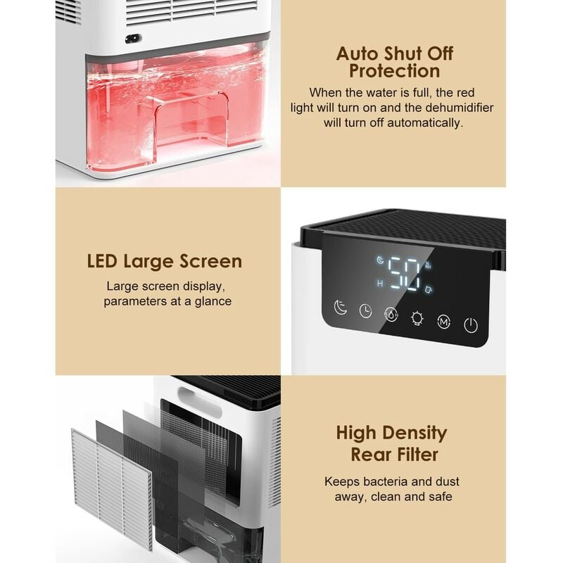Quiet : conçu pour des performances calmes, ce déshumidificateur USB fonctionne avec un faible bruit, ce qui le rend idéal pour une utilisation dans les chambres, les bureaux ou d'autres espaces calmes. Petit déshumidificateur portable élimine l'humidité et sèche-air USB pour la chambre à coucher Vendu et expédié par ToyHome Type d'élément : déshumidificateur Matériau : ABS Couleur : blanc Taille : environ Tension : CC 5 V : 10 W Capacité de déshumidification : environ 250 ml/24 h à (25 ℃, 85 % d'environnement d'humidité) Volume : 800 ml Zone applicable : environ 1520 ~ ㎡ Bruit : Comment utiliser 1., Branchez l'alimentation et activez le dispositif d'exploitation., 2., Lorsqu'il est démonté, l'équipement s'éteint automatiquement et la LED jaune s'élève. Son efficacité énergétique, consomme seulement 1 kWh en 48 heures, ce qui vous permet d'économiser de l'argent sur les factures d'électricité. Utilisation polyvalente : convient aux zones 515-, ce déshumidificateur est adapté à divers environnements, y compris les maisons, les cuisines, les salles de bains et plus encore. Il suffit de le brancher à une source USB et d'appuyer pour commencer à déshumidifier. Merci de votre compréhension., 2., Les moniteurs ne sont pas calibrés de la même manière, la couleur de l'élément affichée sur les photos peut être légèrement différente de l'objet réel. Afloia Mini Déshumidificateur Sans Fil Rechargeable Sans Fil Avec Base Chauffante Petit Deshumidificateur Portable Silencieux Pour Petit Espace Salle De Bain Placard Voiture Camping Car Bateau Lorsqu'il est, l'appareil cesse de fonctionner automatiquement et l'indicateur s'allume, déborde et se verrouille. Puis depuis l'appareil et versez collecté. Arrêt automatique : le déshumidificateur est livré avec 800 ml amovible et un capteur de construction. Il est inodore, résistant à la corrosion, sec et fiable, ce qui peut vous aider à améliorer la qualité de l'air et vous apporter un cadre de vie confortable et sain Déshumidificateur Automatique USB Blanc Petit Déshumidificateur D’air 35oz Déshumidificateur électrique Pour La Déshumidificateur Salle De Bain Déshumidification efficace : ce petit déshumidificateur portable présente une grande sortie et une grande zone d'air, améliorant considérablement l'efficacité de déshumidification.