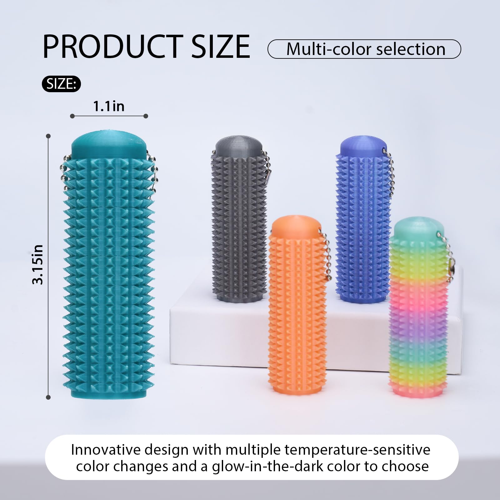 Design unique avec picots de préhension : les petits picots en plastique en forme de rouleau offrent une expérience tactile agréable qui vous aide à vous reposer pendant les moments stressants. Jouet anti-stress portable : il s'agit d'un porte-clés sensoriel pour adultes, qui est un compagnon fiable pour soulager le stress. Soulagement de l'anxiété en déplacement : notre porte-clés à picots offre une stimulation sensorielle discrète pour aider à gérer le stress, l'anxiété, les symptômes du TDAH ou les habitudes nerveuses à tout moment, n'importe où Nos mini rouleaux sensoriels (également appelés bâtons « Ouchie ») sont fabriqués avec une base imprimée en 3D dans la couleur de votre choix et un porte-clés boule Les traces disparaissent rapidement et l'utilisation est sûre et confortable. 4 Pièces Fidget Sensory Toy, Porte-clés Pop, Jouets Cadeau idéal pour soulager le stress : ces porte-clés à roulettes sont parfaits comme accessoire personnel ou cadeau, que ce soit un cadeau adorable pour vous-même ou vos amis, ou pour vous faire ressentir une sensation sensorielle. Nous sommes joignables 24 heures par jour pour vous offrir un service de qualité et satisfaisant. Porte-clés Massage Doigts Antidouleur Little Ouchies Lot De 3 Mini Jouets Anti-douleur Pour Adulte Avec Prise En Main à Picots Et Porte-clés Stimulant, Pendentif En Forme De Clé à Picots Imprimé 3D Pour Soulager L'anxiété Et Jouet De Poche Pour Anxiété Avec ses couleurs vives et son design raffiné, il est idéal pour soulager le stress au quotidien. Scénarios d'application : environnement de travail/environnement social/en déplacement/vie quotidienne Remarques : 1., Les mesures étant prises à la main, les tailles indiquées peuvent varier légèrement., 2., La couleur de l'article peut varier de celle de la photo, en fonction des paramètres d'affichage et de luminosité de votre ordinateur. Nous vous remercions de votre compréhension.