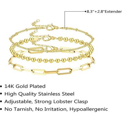 De cheville dorés superposés pour femme | Bracelet de plage en plaqué 18 carats | Bijoux d'été bohème réglables, imperméables | Cadeau chaîne feuille délicate - France Bracelet Cheville Femme Or Relveo Bracelet De Cheville Pour Femme, Plaqué Or 14 Carats Pour Femme, Bracelet De Cheville étanche, Réglable, élégant Ensemble De Cheville Superposé, Bijoux Cadeaux Pour Maman Et Femme La qualité résistante au temps convainc par sa durabilité Design élégant de bracelet : Ce bracelet de cheville se distingue par une construction unique à double chaîne en tons dorés. Vous pouvez ainsi ajuster facilement la longueur de la chaîne pour qu'elle s'adapte à différentes tailles de cheville Alors, n'hésitez plus, plongez dans un bijou scintillant ! Nos bracelets de cheville plaqués or sont fabriqués en argent sterling plaqué or véritable ; ils constituent une alternative bien plus abordable que l'or massif 9 carats Or sterling de haute qualité : Grâce au polissage brillant, il obtient une surface lisse et éclatante. Bracelet Cheville Or Femme Acier Inoxydable Chaine De Cheville Plaqué... Il garantit un grand confort de port, est hypoallergénique et ne ternit pas même avec une utilisation à long terme. La combinaison astucieuse de pendentifs en forme de cœur, de disques ronds, de perles et de symboles d'infini crée un jeu vivant et élégant autour de votre cheville