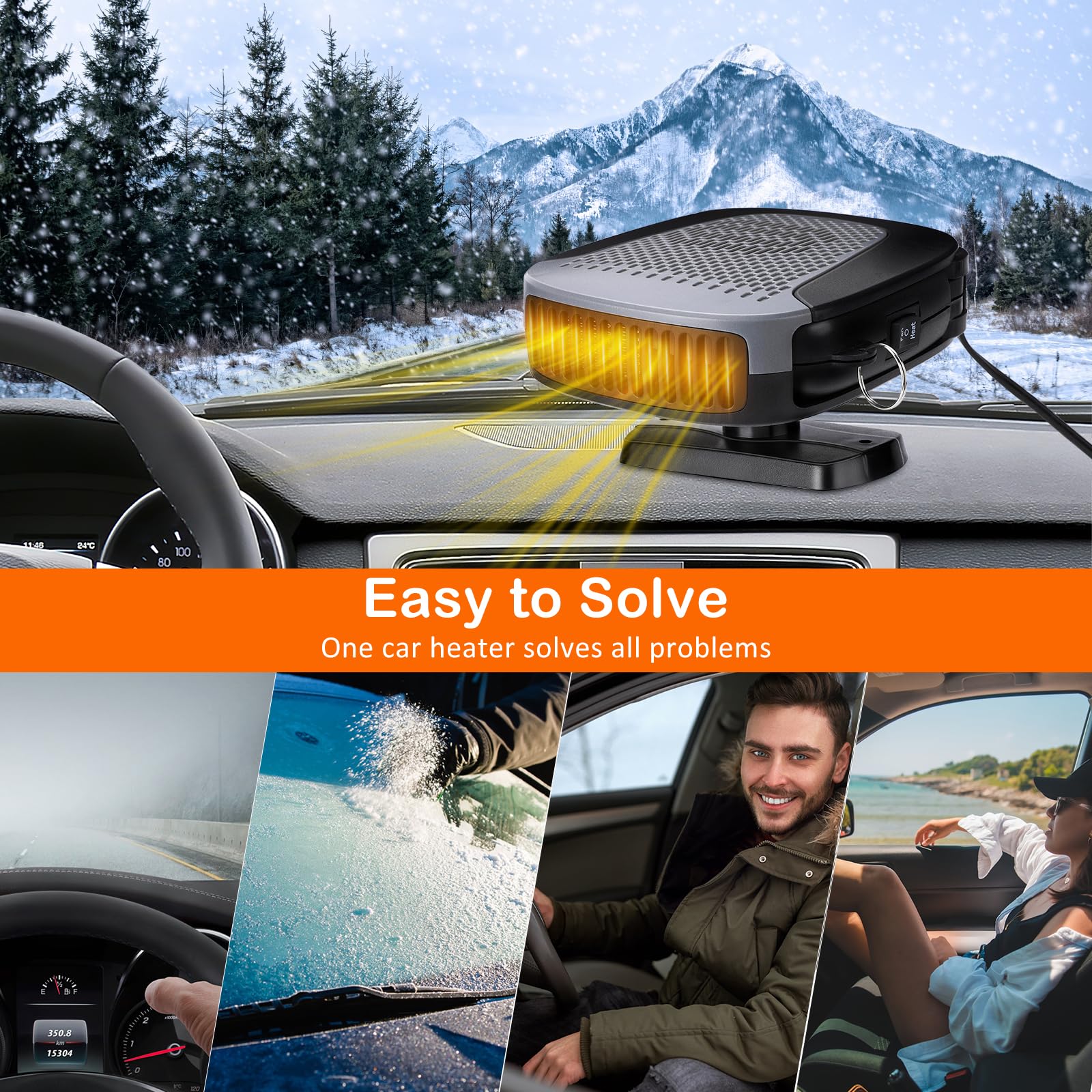 【Chauffage et refroidissement 2 en 1】notre chauffage antibuée dispose de 2 vitesses réglables. Le ventilateur de chauffage de voiture vous permet de dégivrer ou de désembuer rapidement pour que vous puissiez prendre la route et atteindre votre destination. Évitez l'usure du moteur due aux démarrages à froid Il suffit de tourner l'interrupteur pour choisir entre air chaud et air froid. 【Conception intelligente】Ce ventilateur de chauffage pour voiture offre une rotation flexible à 360°. Un cadeau idéal pour Noël, un anniversaire ou le Nouvel An, pour vos proches et leur apporter la chaleur de l'hiver. Accessoire Auto Hiver Chauffage 12 Volts Pour Voiture,Chauffage Degivrage Voiture,Tbest Dégivreur De Voiture 12V,Appareil De Chauffage En Céramique De Désembuage De Voiture De Dégivrage De Dégivreur De Pare-Brise De Voitur Chauffage Soufflant Voiture Allume-cigare Le désembueur de pare-brise offre une visibilité optimale pendant la conduite. Vous pouvez ajuster le pare-brise antibuée selon vos préférences pour éliminer complètement le givre et la buée. Le câble de 140 cm est très pratique à brancher et offre une expérience de conduite confortable pour vous et vos passagers. 【Haute qualité】ce ventilateur de chauffage antibuée pour pare-brise est fabriqué en ABS de haute qualité et doté d'un câble en cuivre pur de haute qualité. Ventilateur de chauffage pour voiture - Dégivrage et désembuage - 12V Il est résistant à la casse. Ce radiateur soufflant de voiture est non seulement très bien adapté pour décongeler/enlever la buée, mais peut également être utilisé comme ventilateur de refroidissement en été et est disponible toute l'année