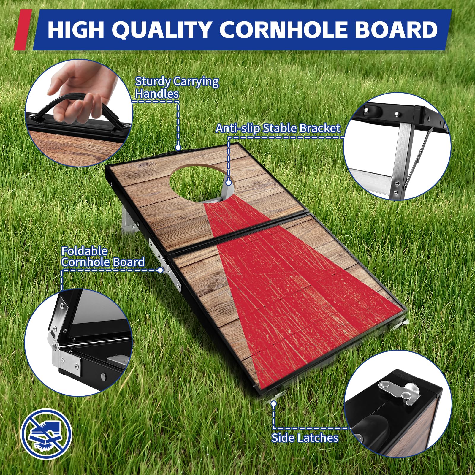 Il comprend également 3 sacs de haricots rouges et 3 sacs de haricots bleus. Il est imprimé avec un motif en forme de bouclier avec un symbole de garde et de responsabilité. Jeu de Cornhole Portable]Ce plateau de cornhole portable est pliable et doté d'une poignée, ce qui le rend pratique à transporter pour les activités de plein air. Idéal pour le jardin, il doit être rangé lorsqu'il n'est pas utilisé afin de le protéger de l'humidité et de préserver sa durabilité Nous vendons de véritables jeux de cornhole dans les tailles 120×60, 90×60 et 60×30 cm. Vous trouverez ci-dessous notre gamme de jeux de cornhole complets comprenant à la fois des planches et des sacs de cornhole Un sac de transport pratique est également inclus pour que vous puissiez emporter l'ensemble avec vous où que vous alliez. Cornhole un jeu d'extérieur idéal pour l'été Amusant pour tous les âges : Jeux de plein air pour les enfants, jouer à un jeu auquel toute la famille peut s'amuser, c'est simple et facile. Service Après-vente : Si vous avez des questions sur l'article après l'avoir reçu, n'hésitez pas à nous contacter pour vous assurer une expérience d'achat satisfaisante. Jeux D Exterieur Adultes NZQXJXZ Jeu Corn Hole Pour Adultes Et Enfants, Cornhole Jeu Portable Avec 8 Sacs De Haricots Et Sac De Transport Pour L'extérieur, L'intérieur, L'arrière-Cour, La Pelouse, La Plage Jeu de Cornhole pour s'amuser : le jeu comprend deux planches de lancement de haute qualité, conçues avec des dimensions standard et une fabrication artisanale pour assurer un processus de lancement fluide et sans heurts. Jeu de lancer de haute qualité : Cet ensemble de jeu de trou de maïs, après l'assemblage est 60 x 35cm( trou de maïs Φ15cm) . Le motif d'inspiration vintage ressemble à la couleur bruyère du bois d'origine.