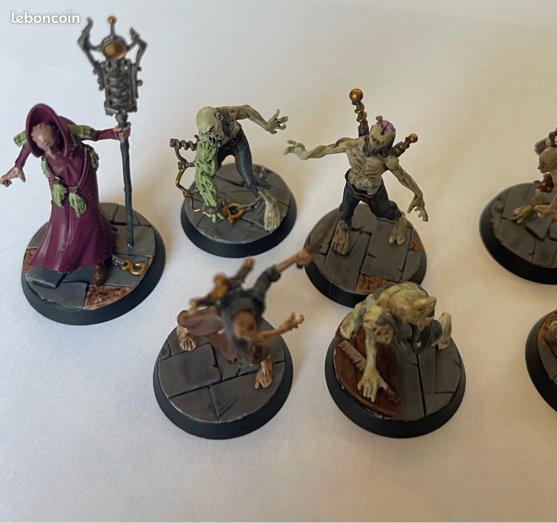 Les Morts en Exil sont agressifs, mais assez polyvalents pour que vos adversaires restent sur leurs gardes et jouent les objectifs. Le vampire les appelle ses Dynamorts, et ils se meuvent à l’unisson, tels des pantins. Warhammer Underworlds Harrowdeep - The Dead In Exile VF New Games Workshop GW Le vampire les appelle ses Dynamorts, et ils se meuvent à l’unisson, tels des pantins. Grâce à eux, Deintalos espère bien s’emparer de tous les trésors de Hersefond, et découvrir ses moindres secrets Une fois que vous aurez mis vos combattants titubants en bonne position, ce ne sera pas facile de les en déloger. Warhammer Underworlds - Figurines sur un Plateau - Jeux de figurines Cette boîte inclut une pile Rivaux complète, et des tas de cartes supplémentaires vous permettant d'essayer quelques mauvais tours, ainsi que des cartes universelles et des cartes de Grande Alliance à utiliser avec vos autres bandes. Ce set contient: - 7x figurines des Morts en Exil à emboîter – aucune colle n'est nécessaire pour les assembler – et moulées dans un plastique grisâtre cadavérique pour qu'elles ressortent même sans peinture - 7x cartes de combattant, une pour chaque guerrier de la bande – Deintalos l'Exilé, l'Apprenti Marcov, le Marchemort Regulus, et les Dynamorts Vlash, Bault, Coyl, et Ione. Bande Harrowdeep Games Workshop Les Morts En Exil – 109-12 – Harrowdeep – Warhammer Underworlds – Französisch Warhammer Harrowdeep Français Grâce à eux, Deintalos espère bien s’emparer de tous les trésors de Hersefond, et découvrir ses moindres secrets. Ses expérimentations avec la Force Dynamique, une source d’énergie électro-ésotérique qui, pense-t-il, anime toute vie, l’ont forcé à s’exiler de Shyish, où cette branche de la nécromancie est tabou. Hersefond a été l’endroit idéal pour installer son laboratoire avec l’aide de son apprenti Marcov.