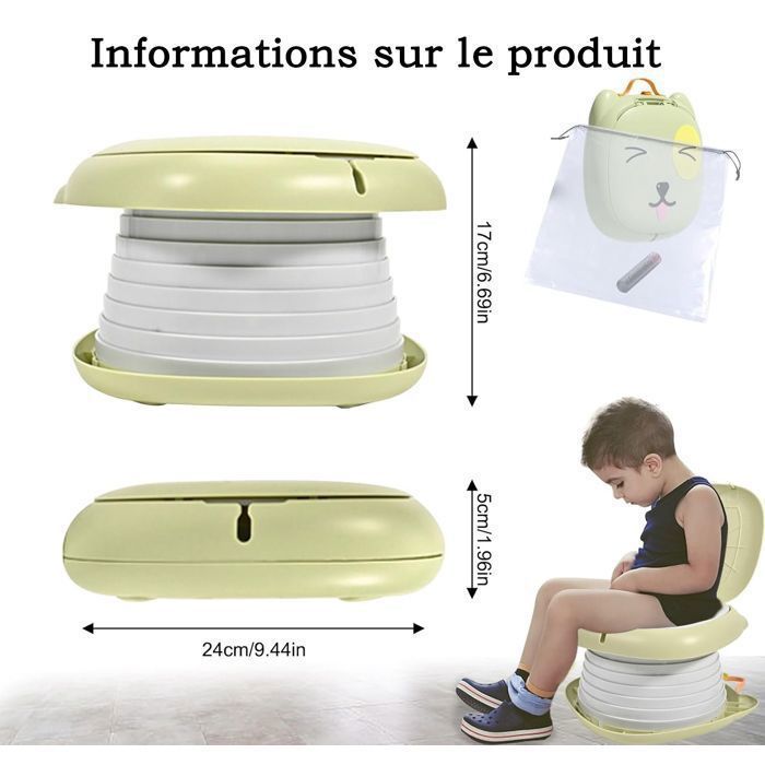 Pot Pliant Avec Sacs Jetables Sac Transport Toilettes De Camping Pliables Et Portables, Avec 100 Sacs Poubelles, Pour Le Camping, Le Pot Pliable Spécifications : Nom du produit : Pot pour enfants, Matériau : PP Le pot de voyage se plie et se range dans le sac de transport inclus. Les informations relatives aux dimensions sont fournies à titre indicatif uniquement. 【Apprentissage de la propreté】 : ce pot de voyage aide à développer des habitudes d'hygiène indépendantes, stimule le potentiel d'indépendance de votre enfant et renforce sa confiance en lui lorsqu'il utilise les toilettes. Lorsque vous êtes en déplacement, que vous rencontrez des embouteillages au volant ou que vous êtes confronté à des urgences, ce pot portable peut vous éviter l'embarras et l'anxiété liés à l'utilisation des toilettes publiques et vous offrir une solution propre et pratique. 【Largement utilisé】 : il convient non seulement à l'apprentissage de la propreté à la maison, mais aussi aux voyages, aux longs trajets, au camping, aux excursions en voiture et aux activités de plein air. Le pot de voyage pour enfants est livré avec 100 sacs poubelles pour contenir les déchets solides, et les sacs poubelles jetables peuvent être jetés directement après utilisation, sans avoir à se soucier de les nettoyer. Caractéristiques : Conception ergonomique : le coussin est conçu pour être confortable pour votre bébé, et sa forme est parfaite pour son corps afin qu'il se sente en sécurité lorsqu'il l'utilise. Pot De Voyage Pour Voiture Bébé Pot Siège De Camping Enfant En Bas Âge Siège De Toilette Pliable Facile à nettoyer : la surface lisse et la doublure jetable facilitent le nettoyage, ce qui permet aux parents d'économiser du temps et de l'énergie. Léger et pliable, le pot tient aisément dans un sac à main ! Pour l'utiliser, il suffit de le déplier ; puis, une fois la commission faite, repliez-le et jetez-le à la poubelle De légères différences sont possibles en raison de la mesure manuelle. Ce produit se plie facilement et est pratique à transporter, ce qui le rend idéal pour les voyages ou les excursions. Sa conception stable et antidérapante garantit que les enfants peuvent l'utiliser en toute sécurité sans risque de basculement. En raison des différences d'écrans et de luminosité, il peut y avoir de légères différences de couleur. Conseils utiles : À utiliser sous la surveillance d'un adulte. Lors de l'utilisation, le produit doit être placé sur un sol lisse et sec, en évitant les pentes, les endroits glissants ou irréguliers, afin d'éviter que le produit ne glisse et ne provoque la chute des enfants. TZEKING Pot Pliable Enfant Voyage,avec Sac de Voyage et 100 Sacs Poubelles Jetables,Siège de Toilette pour Enfants,Siège Toilette Pliable,Pliante Toilettes pour Enfants pour Voyage Extérieur Camping Couleur : rose, bleu, vert, Taille : 21*19,5*9,7 cm/ 8,27*7,68*3,82 pouces 【Ensemble de pot pour enfants de qualité】 : l'ensemble de pot de voyage portable 3 en 1 pour enfants comprend 1 pot pour enfants de haute qualité, 1 sac de rangement et 100 sacs poubelles.