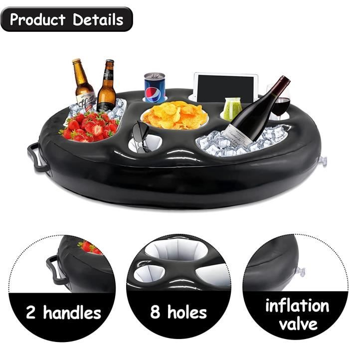 Bar De Piscine Hors Sol 3PCS Gobelet Gonflable Flotteur,Porte Gobelet Gonflable Piscine Suppor 126728825685 Palmier Gonflable Profitez de la détente dans l'eau grâce à l'attrayant plateau flottant. Notre bouée piscine, porte-gobelet gonflable, est l'accessoire idéal pour vos fêtes au bord de l'eau. Fabriqué en PVC épaissi et respectueux de l'environnement, ce flotteur est réutilisable, durable et pratique, vous permettant de profiter de vos boissons sans souci de fuites d'air Facile à transporter et à ranger, il peut être gonflé avec une pompe électrique ou un gonfleur manuel. Lorsqu'il n'est pas utilisé, il se replie pour un rangement et un transport faciles, idéal pour les voyages en extérieur Un beau design qui attirera l'attention La décoration parfaite pour les fêtes de plage ou à thème, les fêtes d'entreprise, les mariages et autres. Bouée Gonflable Avec Poignées Et Porte-gobelet 1.02m Hydro-Force Bestway 36173 🌴Pool party : convient aux gobelets, aux canettes de boissons gazeuses et aux gobelets en plastique, etc. Les enfants doivent être sous la surveillance d'un adulte lors de l'utilisation pour éviter tout danger inutile. Placez le porte-gobelet de piscine à plat sur la surface de l'eau de la piscine pour garantir qu'il flotte de manière stable dans l'eau. 🌴 Porte-boisson gonflable de haute qualité : matériau PVC de haute qualité et respectueux de l'environnement. Le porte-gobelet convient aux eaux calmes et ne doit pas être utilisé par vent fort et par vagues. Après utilisation, dégonflez le porte-gobelet gonflable et laissez-le sécher dans un endroit bien ventilé. 🌴 Porte-boisson de piscine : grand porte-boisson de piscine en cocotier gonflable de 95 x 55 x 55 cm, petit porte-boisson de piscine en cocotier : 28 cm de hauteur (gonflable) Conditionnement : 1 grand cocotier + 2 petits porte-boissons de piscine en cocotier. Ne placez pas d'objets pointus sur le porte-gobelet pour éviter de percer la surface.