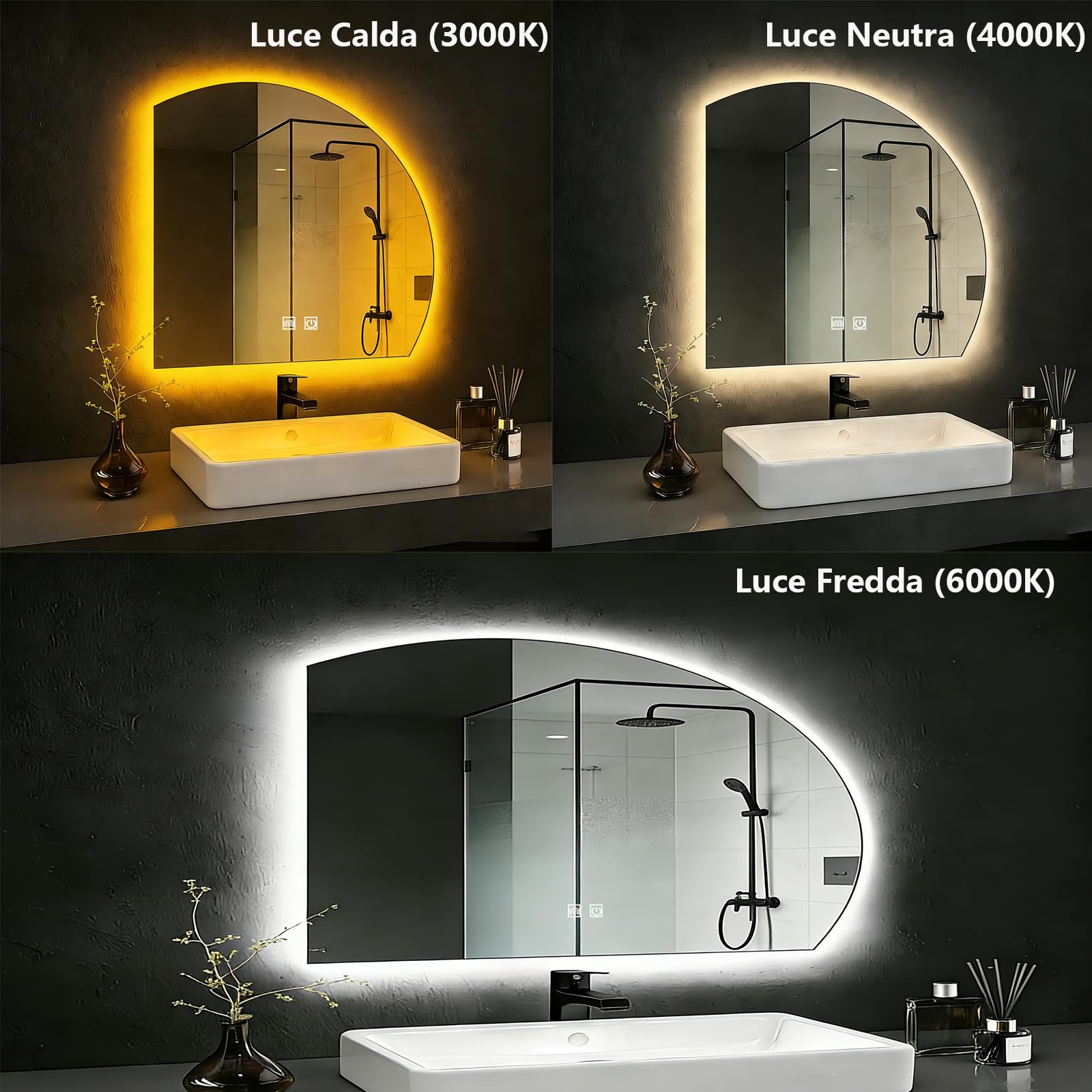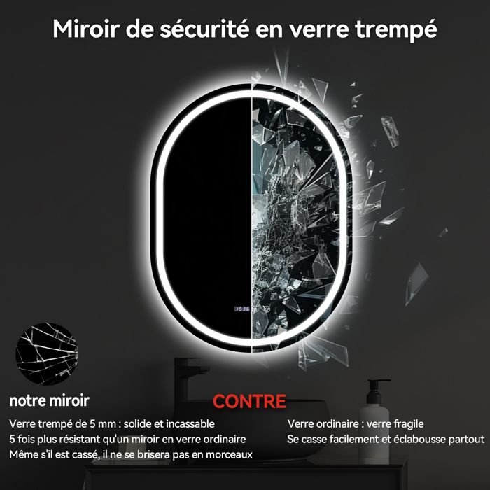 LUVODI Miroir Carré Salle de Bain LED: 80x80cm Miroir connecté avec Prise Interrupteur Tactile Gradable Miroir Mural 3 Températures de Couleur Miroir Intelligent Tactile 3 Couleurs Miroir De Salle De Bain Rond Avec éclairage LED, Miroir De Salle De Miroir Led Tactile 3 Couleurs Miroir argenté HD de qualité supérieure : verre écologique sans cuivre avec revêtement à 6 couches et bords polis, résistant à la rouille et à l'oxydation for une clarté durable. Qualité LED : Les LED à IRC élevé, à faible chaleur et étanches garantissent un éclairage brillant et une longévité. Méthode d'installation1、Préparez le miroir et les outils d'installation2、Percez un trou de 6,0 à 8,0 mm sur le mur, vissez les vis d'expansion et les crochets3、Accrochez le miroir au crochet Miroir de salle de bain avec lumières LED, 550 mm x 800 mm, miroirs LED asymétriques avec interrupteur tactile intelligent, 3 couleurs à intensité variable, anti-buée, miroir intelligent Options Éclairage réglable à 3 couleurs : basculez en toute transparence entre 3000 K (jaune chaud), 4000 K (blanc neutre) et 6000 K (blanc froid) via le contrôle tactile, avec une luminosité réglable. VEVOR Miroir salle de bain LED 70 x 100 cm, miroir maquillage avec... Conception de sécurité et antidéflagrante : l'arrière a été traité avec un revêtement antidéflagrant for éviter les éclats de verre, protégeant ainsi votre famille contre les bris accidentels. Nom du produit : Miroir de salle de bain irrégulier sans cadreMiroir : Miroir argenté HD écologique sans cuivreÉclairage : Perles LED à faible consommation d'énergie (indice d'étanchéité IP44)Taille : 40x60cm, 50x70cm, 60x80cm, 70x90cmEmballage inclus:Miroir mural x1Méthode de nettoyage :Si la tache sur le miroir est difficile à traiter, vous pouvez l'essuyer avec de l'alcool ou une dilution de nettoyage à 30 %, ou la gratter avec un cutter ; veuillez utiliser une serviette sèche for garder votre salle de bain plus aérée.