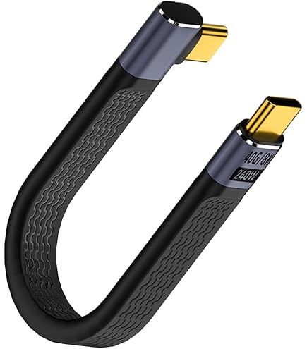 QIANRENON USB C 90°Adaptateur Type C Femelle à Mâle Coupleur Support Vidéo 8K 60Hz QIANRENON 240 W - Fiche USB 4.0 C Vers Fiche C Coudée à 90° - PD - Charge Rapide - 40 Gbps - Type C - Câble De Données Plat Et Flexible Vidéo 8k Thunderbolt Compatible Surface anodisée, aspect exquis, anti-traces de doigts et anti-rayures. Connecteur USB C à angle droit : connecteur USB 4 2., 0 C mâle vers femelle 80 Gbps - Charge rapide - Données de charge rapide - Connecteur coudé à 90°. Compatible avec le protocole USB4 2., 0, prend en charge le casting Ultra HD 8K @ 60Hz, le moniteur externe 8K ou l'écran 4K @ 144 Hz., Application : connecteur USB 4 2., 0 de type C coudé à 90°. Adaptateur d'angle USB4 V2 de Type C à 90 degrés, 80Gbps, Thunderbolt 5 4 3, adaptateur coudé, connecteur de câble USB-C 240W 40Gbps pour MacBook Air Compatible avec Thunderbolt 3/4/5, utilisé pour la charge rapide PD, le transfert de données, le casting, l'OTG, l'écoute de chanson, les appels vidéo, les smartphones, les tablettes, les ordinateurs portables, les consoles de jeux, les disques durs et d'autres adaptateurs de port de type C. QIANRENON USB2.0 - Conutador de ipresora USB B de 2 puertos... Le boîtier en alliage d'aluminium est plus résistant à l'usure et à la pression qu'un boîtier en plastique et dissipe mieux la chaleur. Conception de pliage positive à angle droit, facile à installer dans des espaces restreints, réduit les interférences de fonctionnement, évite les dommages causés par la flexion., USB4 2., 0 C : rallonge d'adaptateur USB 4 2., 0 de type C à angle de 90 ° pour toute la fonction., Certifié USB4 2., 0, bande passante théorique de 80 Gbps, deux fois supérieure à celle de l'USB4 1., 0 (40 Gbps).