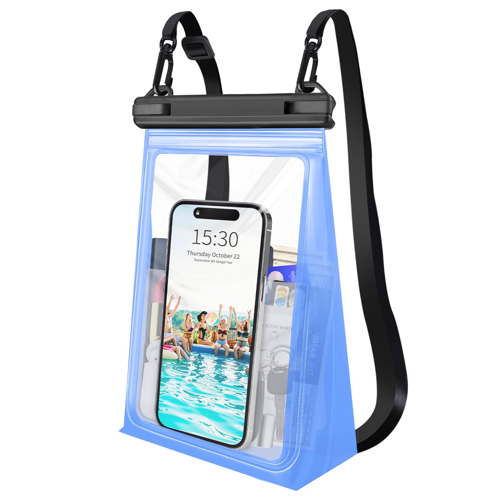 Sac étanche 10L Sac à bandoulière étanche et étui de téléphone Portable Pochette Pour Téléphone Portable Pochette étanche FIDLOCK Avec Fermeture GOOPER Pochette Ipx8 Decathlon Pochette étanche IPX8 pour téléphone portable avec cordon | Coque de protection d'écran tactile, accessoires de natation sous-marine pour kayak, bleu marine Idéal pour vos sorties en mer. Cet étui de téléphone grand format étanche (résistance IPX8) protège votre téléphone de l’eau. Il peut se porter en bandoulière grâce à son cordon réglable