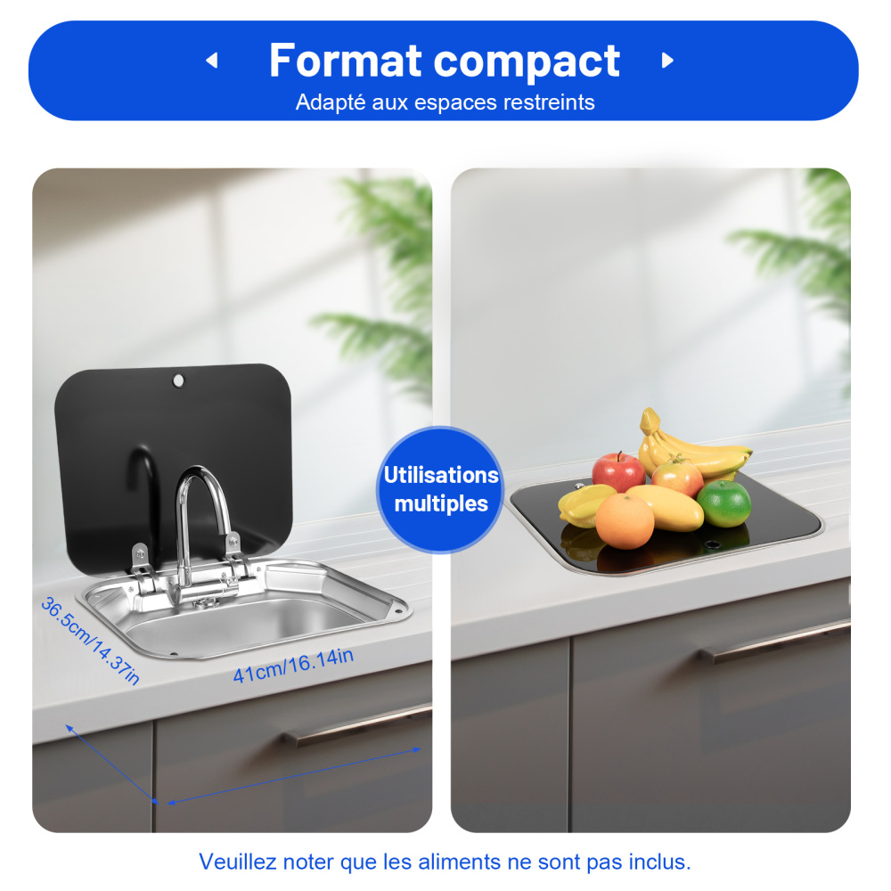 Le couvercle noir est élégant et polyvalent. COUVERCLE D'ÉVIER EN Acier Inoxydable De Robinet Lavabo EUR 5,85 - PicClick FR Lavabo à main en acier inoxydable avec couvercle en verre trempé pour camping-car, caravane ou bateau R : Hauteur de l'article : 18 cm. Longueur : 42 cm. Type de matériau Remarques : Les mesures étant prises à la main, les tailles indiquées peuvent varier de 1 à 3 cm. En outre, la taille de ce lavabo est de 16,7 x 14,7 x 5,9 pouces, qui est très compact et convient à la plupart des camping-cars avec un espace limité. Par conséquent, cet évier est très durable et peut être utilisé pendant une longue période. Autres accessoires pour l'installation. 【Service client】Notre objectif est de fournir des produits et des services de haute qualité, nos produits sont testés avant de les mettre sur le marché, si vous avez des questions, nous ferons de notre mieux pour vous aider. Matériau : acier inoxydable 304, verre trempé Traitement de surface : revêtement galvanisé Températures applicables : 0-100 ℃ Dimensions extérieures de l'évier : 42,3 x 37,3 x 15 cm. évier Caravane Bateau Avec Robinet Evier En Acier Inoxydable Avec Couvercle En Verre | Lavabo En Aluminium évier Inoxydable 304 Pour Caravane Avec Robinet Couvercle rabattable pratique : lorsque vous n'utilisez pas l'évier, le couvercle rabattable en verre peut transformer l'évier en un plan de travail, de sorte que vous utilisez pleinement l'espace de votre caravane. Il s'agit d'un ensemble complet de lavabo pour camping-car avec robinet, lavabo, tuyau d'alimentation, tuyau d'évacuation et accessoires de montage. Cet ensemble d'évier est conçu pour les camping-cars avec peu d'espace Si vous souhaitez utiliser l'évier pour laver les légumes ou les fruits, vous pouvez bloquer le drain avec le bouchon fourni. Il s'agit d'un kit complet de lavabo pour camping-car, y compris robinet, lavabo, tuyau d'alimentation, tuyau de vidange et accessoires de montage. Dimensions du colis : 49 x 41 x 18 cm., Poids brut : 5 kg., Poids net : 4 kg., Contenu : 1 lavabo., 1 robinet., 3 tuyaux. En outre, le couvercle s'ouvre facilement en soulevant le petit trou dans le couvercle avec votre doigt. Le design carré est soigné et simple. Apparence élégante : le lavabo argenté est très brillant et exquis. Il se replie également vers le haut et vers le bas pour que vous puissiez utiliser ou fermer le couvercle, ce qui est très pratique et attentionné. Diamètre d'entrée d'eau : 3,8 cm.