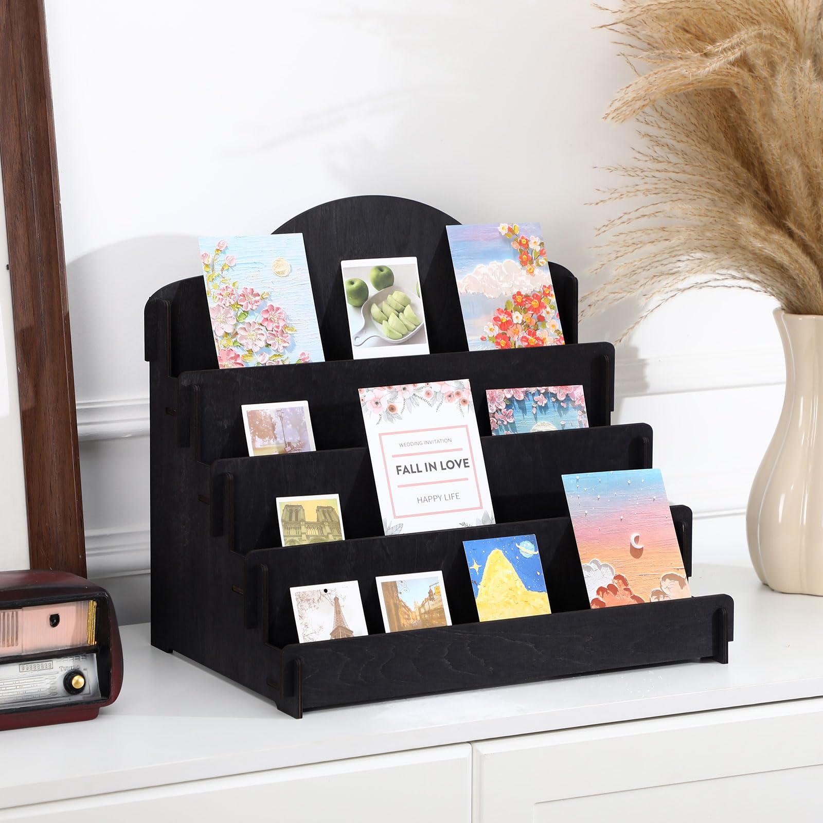 Quatre niveaux d'espace d'affichage peuvent facilement accueillir un grand nombre de cartes de vœux, en veillant à ce que votre collection de cartes soit visible et mise en valeur dans son intégralité. 2 ensemble de présentoirs pour cartes de vœux à 4 niveaux:vous recevrez 2 ensembles de présentoirs pour cartes de vœux. Présentoir de collection en bois:fabriqué en bois, ce présentoir est robuste et durable sans être trop lourd, le rendant facile à tenir et facile à nettoyer et à nettoyer. Presentoir Bois UNICRAFTALE Présentoir De Cartes De Vœux En Bois à Scénarios applicables:Idéal pour les bureaux, restaurants ou points de vente au détail, Le présentoir de cartes de vœux peut également être utilisé comme présentoir de bureau pour les cartes de vœux ou les bijoux, aider les utilisateurs à organiser leurs cartes de vœux ou leurs bijoux. Insights - Présentoir en bois à 4 niveaux pour cartes de vœux - Support de rangement pour Exclusif Popularité - , 1 day for sale on eBay. 0 vendu, 3 disponibles Support Cartes Postales Bois Le Collectionneur De Voeux UNICRAFTALE Présentoir De Cartes De Support Collection Cartes Anniversaire Présentoir en carton à 4 niveaux pour dépliants, cartes de vœux, 34 x...