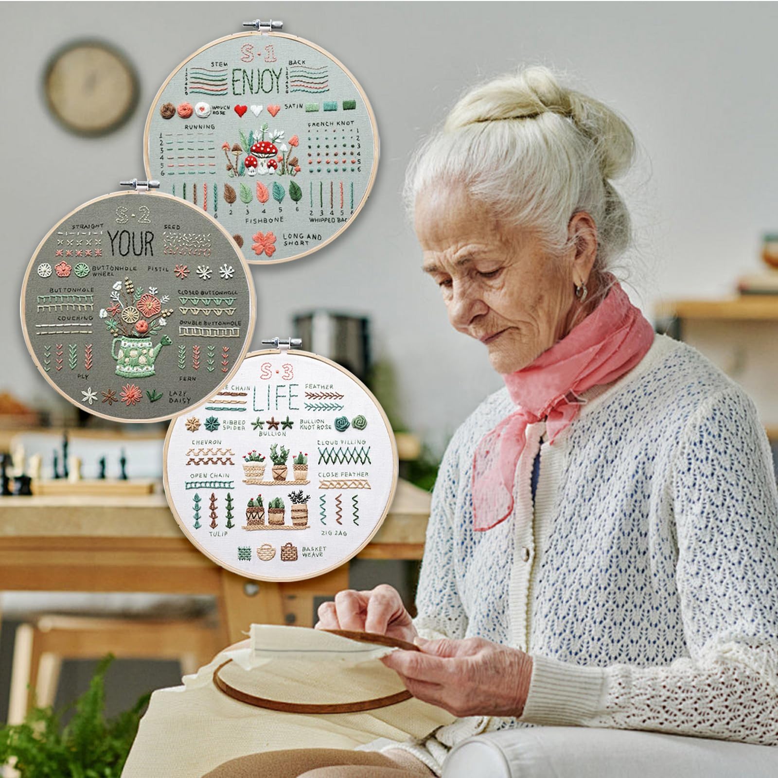 【Beaucoup d'espace pour s'entraîner】 Chaque point du kit peut être pratiqué de nombreuses fois. Broderie Pour Débutants est un artisanat unique et magnifique, un cadeau parfait pour les amis, les enfants et la famille. Apprenez la broderie facilement avec notre sélection de starter packs. Découvrez nos conseils et recommandations pour trouver les outils idéaux et commencer à broder sans souci Kit de broderie pour débutant : ce kit de broderie est parfait pour les débutants pour apprendre différents points de broderie, 10 types de points de broderie sur chaque tissu à broder, vous pouvez apprendre plus de 30 points différents en suivant les instructions détaillées (français non garanti Conçu pour rendre la broderie facile et amusante, même les débutants peuvent facilement apprendre les compétences de base en broderie. Kit De Démarrage De Broderie Estampé Bricolage Avec Fleurs Plantes Motif Broderie Tissu Couleur Fils Outils Kit Type Cx0091 1871611874 L 【Meilleur Cadeau】Ce kit d'aiguilles d'entraînement à la broderie est un excellent cadeau pour les membres de la famille ou les amies. Comme un cadeau spécial et utile pour eux, vous pouvez également l'afficher comme décoration dans votre maison. Accessoires Couture Broderie JSRQT Kit De Démarrage De Broderie, Papillons Kit De Broderie Pour Cadeau Couture Créative 【Idéal pour Débutants en Broderie】Propose 33 techniques de broderie de base, des instructions complètes en anglais et tout le matériel nécessaire, y compris les cadres à broder et le fil. Il peut y avoir une erreur de 1-2 cm, merci de votre compréhension., 2., en raison des différentes conditions d'éclairage lors de la prise de vue et de la luminosité de chaque écran d'ordinateur, la compréhension des couleurs est différente et il peut y avoir de légères différences de couleur. 【Kit de Démarrage Broderie DIY】3 tissus à broder avec motifs, 2 cadres à broder, 3 instructions, 10 fils de couleur, 9 aiguilles à broder, 1 enfileur, 1 coupe-couture.
