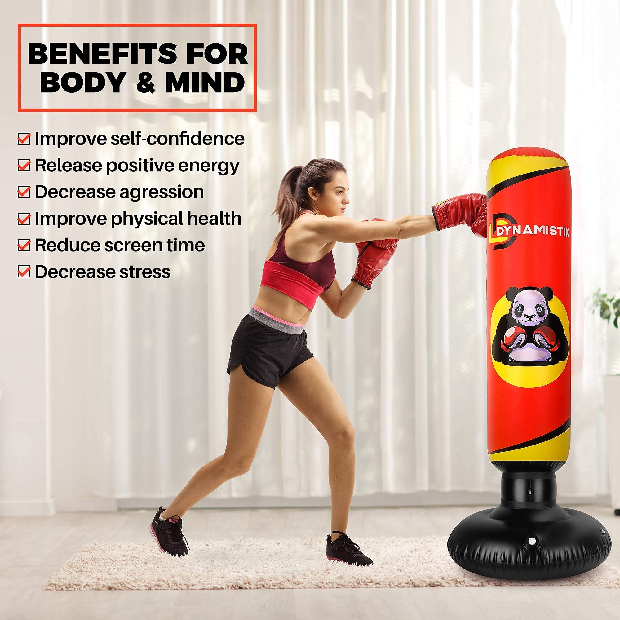 infactory Punching Ball Gonflable Ballon Fitness Pvc 65cm Punching Ball Gonflable | Spécial Boxeur – Tigre Thai Punching Ball Avec Pompe Base lestée stabilisatrice supprime tout risque de basculement pendant le jeu. Une base antidérapante assure un placement sécurisé, et la fonction anti-basculement améliore la sécurité pendant l'utilisation. Spécification:Matériel: PVCTaille après l'inflation: environ 65x120 cm / 25,59x47,24 poucesPoids du produit: 300gListe des produits:1 * Sac de poinçonnage gonflable pour Pompe à pied 1 *Note:En raison de différents paramètres d'éclairage et d'écran, la couleur de l'élément peut être légèrement différente de l'image. Punching-ball gonflable enfant 2 à 10 ans En raison de différentes mesures manuelles, veuillez permettre une différence de taille de 1 à 2 cm. Esquivez, bloquez, remisez sur la tige ou sur le punching ball. Judicieux, ludique et efficace pour votre progression. Les exercices sont multiples: Esquive... Endurance musculaire : Renforce la condition physique par des frappes répétitives, favorise l'évacuation de l'énergie tout en développant des habitudes durables grâce au retour réaliste du sac pour un entraînement efficace des . Que ce soit à la maison, en salle de sport ou au bureau, cet outil polyvalent favorise la forme physique et un mode de vie actif sans effort.