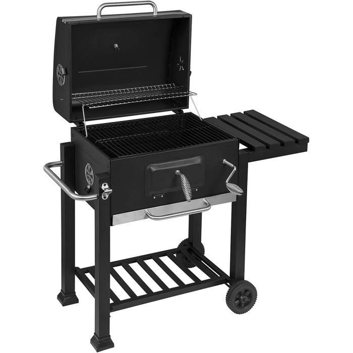 Des patins antidérapants assurent la stabilité. Le barbecue est monté sur un chariot stable avec tablettes latérales et une plateforme de rangement. Il est idéal pour des repas en groupe, pouvant accueillir jusqu'à 20 convives. Les grilles de cuisson en acier chromé mesurent 36 x 39,5 cm chacune Bienvenue chez KOMFOTTEU: Découvrez les multiples possibilités du barbecue à double charbon de 24 pouces avec zones de chaleur et de cuisson séparées ! Profitez du vrai plaisir du barbecue partout. Chaque chose a sa place pour maintenir l'ordre. Le thermomètre de cuisson surveille les températures en temps réel de 0 à 350 ℃. Les volets d'air réglables permettent de contrôler l'intensité de la combustion. 71450 Barbecue à roulettes avec Grille en INOX Noir 88x68x40cm[361... Avec un contrôle précis de la température, une organisation ergonomique et une mobilité facile, les grillades en plein air deviennent un jeu d'enfant. Barbecue charbon tourne broche grille - 2 tablettes latérales Grill Avec Tables Latérales KOMFOTTEU Barbecue Portable à Charbon De Bois Avec Roues, Gril à Charbon De Bois, 57cm Et Barbecue Charbon 2 Zones Le barbecue se déplace sans effort pour les activités de plein air comme le camping et les garden-parties. Profitez de la liberté d'ajouter du charbon et de préparer les plats les plus délicieux, où que vous soyez. Avec ce barbecue, vous serez toujours bien équipé pour savourer de délicieux repas et créer des expériences en plein air inoubliables. CUISSON ZONÉE : Le barbecue au charbon de bois avec une zone de maintien de la chaleur de 54 x 24 cm et une zone de cuisson de 54 x 41 cm permet de traiter les aliments séparément. La tablette latérale rabattable offre un espace supplémentaire pour préparer les ingrédients sans effort.