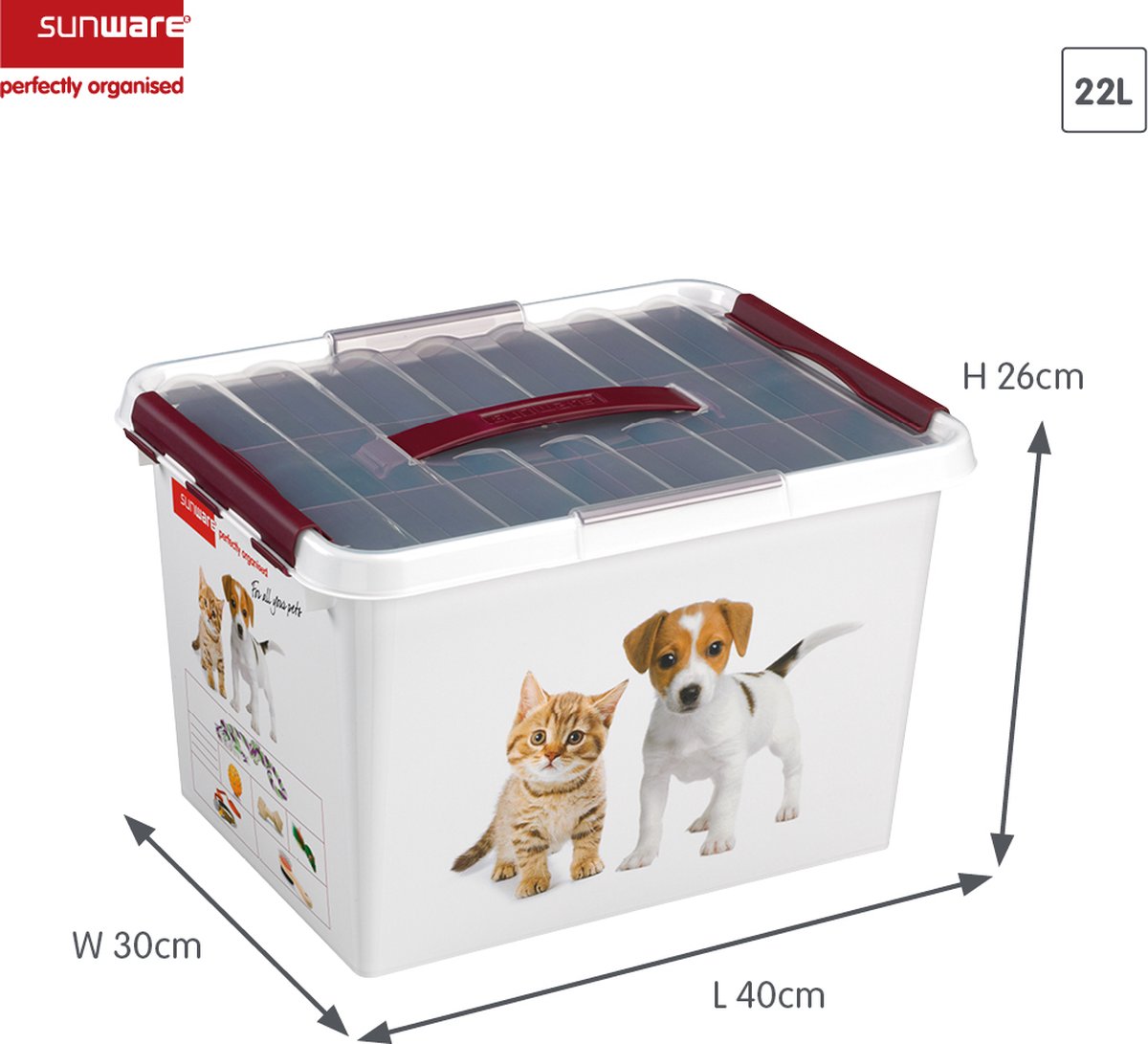 Boîte parfaitement empilable. La boîte est livrée avec des clips verrouillables robustes et transparents. Produit disponible en poids optimisé avec une capacité de 22 litres. Boite de rangement q-line multibox (9 litres Produit disponible en blanc bordeaux avec des dimensions de 40 x 30 x 26 cm., Fabriqué aux Pays-Bas Sunware Q-line boîte de rangement 9l transparent | Hubo Rangement Jouets Animaux Clips Verrouillables SUNWARE Q-LineBoîte Décor Animal Domestique - 15 Litre - 40 X 30 X 18cm Wit Bordeaux Stockage Nourriture Jouets Chien Chat Aspect Coloris Blanc Bordeaux Matériau principal Plastique Dimensions Hauteur (en cm) 18,00 Longueur (en cm) 40,00 Profondeur (en cm) 30,00 Autres...