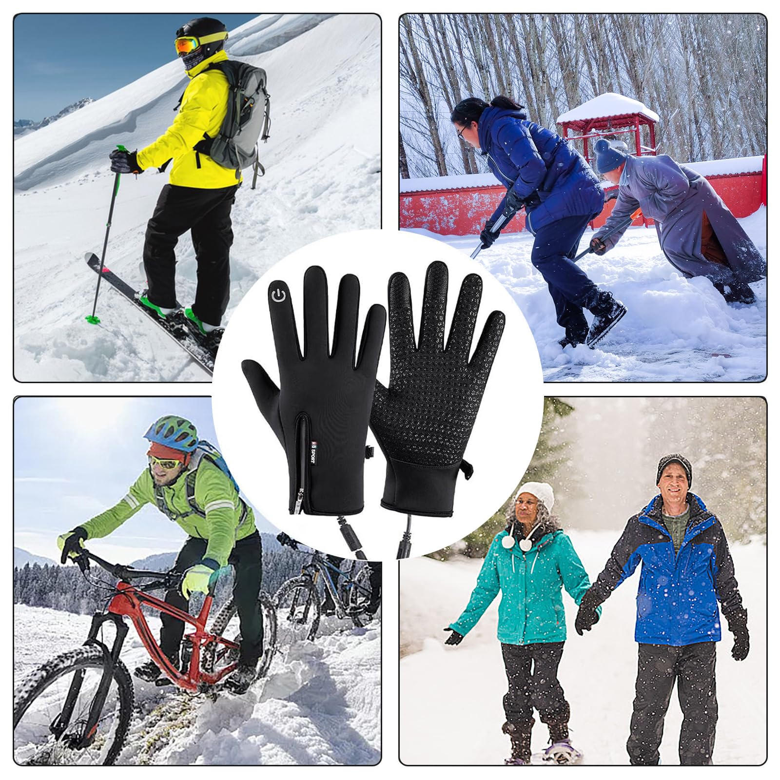Ces gants chauds pour homme sont les meilleurs cadeaux d'hiver pratiques pour votre amoureux, vos amis et votre famille. Gants légers et flexibles Design ajusté : avec des poignets élastiques et des sangles de poignet réglables, ces gants assurent un maintien sûr au poignet et empêchent l'air froid de pénétrer. Gants Paume Silicone Antidérapante Gants D'hiver Chauds Pour écran Tactile, Gants De Ski Imperméables Grey Gants Hiver Homme Ces gants chauffants allient chaleur, sécurité et confort et veillent à ce que vous préserviez votre dextérité et votre bien-être même par temps froid amer, de sorte que vous pouvez profiter de chaque moment en plein air cet hiver Zone de la paume en silicone antidérapante : la zone de la paume est munie d'un imprimé en silicone très résistant à l'abrasion qui améliore considérablement la friction avec des équipements tels que les guidons, les bâtons de ski et les bâtons de trekking. Il assure un maintien sûr en cas d'humidité, de gel ou lorsque vous portez des gants, améliorant ainsi la sécurité et le contrôle pendant les activités. Ils restent fermement en place même à des vitesses élevées lorsque vous faites du vélo, du ski ou de la randonnée, offrant une protection fiable, vous permettant de vous concentrer entièrement sur votre activité sans craindre que les gants ne glissent KELEKELE Gants d'hiver Gants de Ski de Snowboard Homme Femme Ils gardent les mains constamment au chaud même par temps froid extrême et assurent le confort, ce qui en fait le choix idéal pour les activités de plein air en hiver. Ils restent fermement en place même à des vitesses élevées lorsque vous faites du vélo, du ski ou de la randonnée, offrant une protection fiable, vous permettant de vous concentrer entièrement sur votre activité sans craindre que les gants ne glissent. Gants chauffants USB : ces gants disposent d'un système de chauffage uniforme intégré qui est alimenté par USB et assure un chauffage rapide.