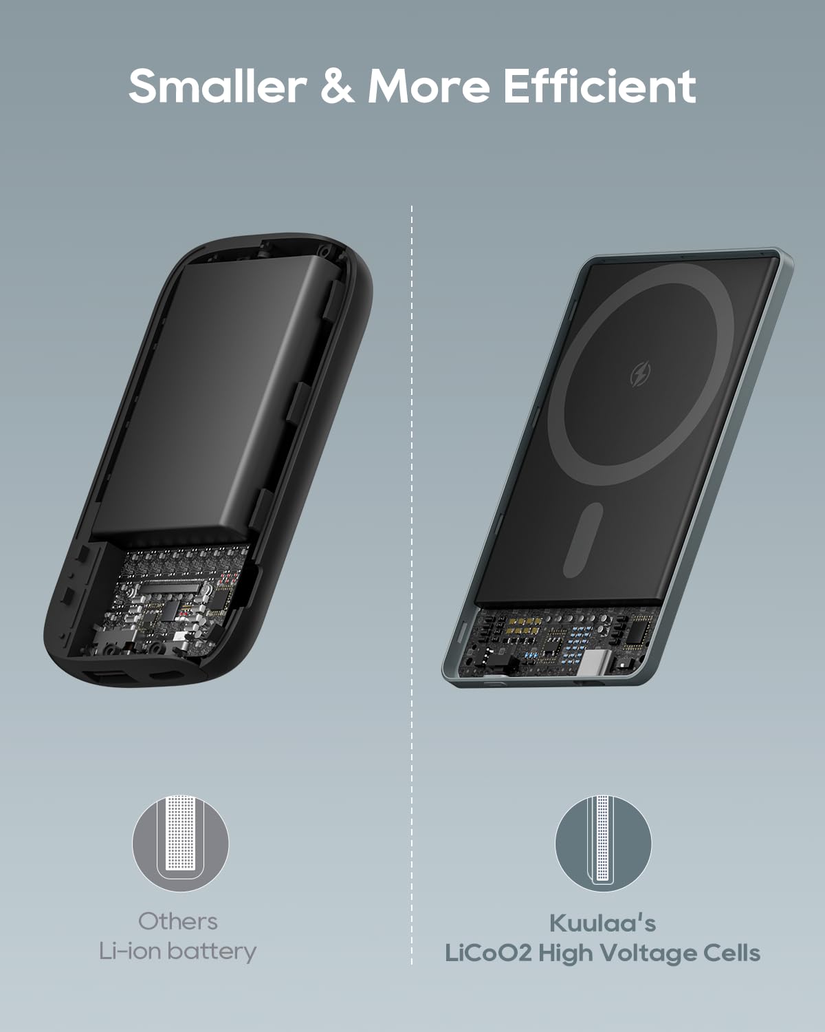 Kuulaa Batterie Externe Magsafe 5000mAh 20W, 0.8cm Ultra Mince Mini Batterie Externe, Power Bank Charge Rapide Sans Fil Avec Support Compatible Avec IPhone 16/15/14/13/12 Voyage Accessoires - Gris