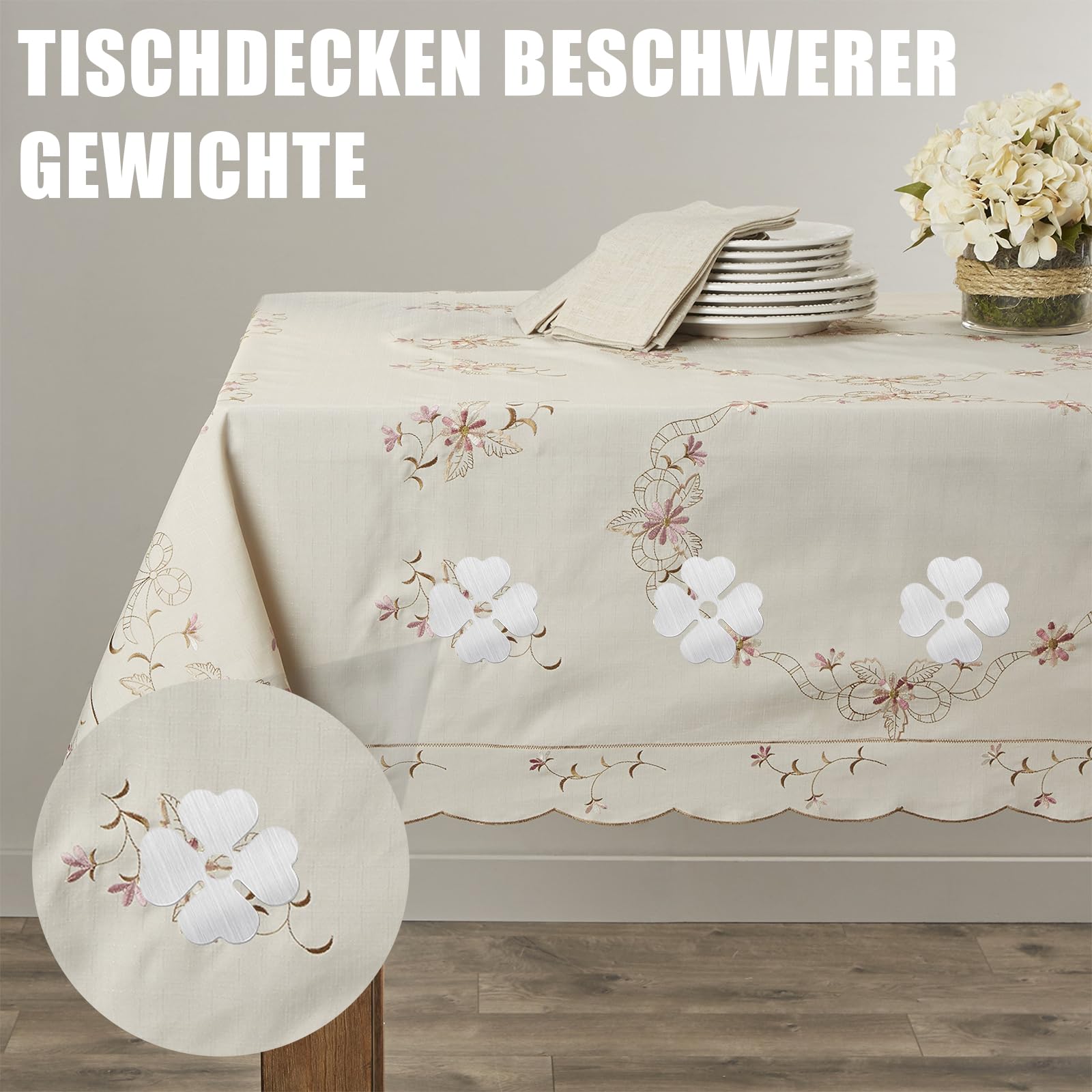 Léger et facile à utiliser : Les fixateurs sont légers et faciles à manipuler sans endommager la nappe et peuvent être rapidement fixés et retirés. Attaches nappes en forme de fleur : Ensemble d'attaches nappes en forme de fleur, parfait pour fixer solidement les nappes et éviter de glisser. Pratique pour les activités de plein air : Idéal pour les pique-niques, les rassemblements de jardin ou autres événements en plein air, garantit que la nappe reste bien en place et ne fait pas mal. Poids Magnétiques Rideaux Lot De 8 Poids Magnétiques Pour Nappes D'extérieur - Fixations Attaches Magnétiques Nappe C'est un accessoire décoratif pratique pour rideaux, nappes, drapeaux, etc., adapté à la cuisine, à la salle de bain, à la maison et à l'hôtel. Ils peuvent être fixés à différentes parties du rideau. pour les maintenir stables et en place 5,9X5,9 cm) 8 pièces poids de nappe d'extérieur avec aimants, attaches... Poids Pour Rideaux D'Extérieur, 4 Paires De Poids Pour