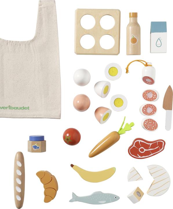 Pour encourager le jeu symbolique Fruits en bois à découper beige - New classic toys FRUITS ET LEGUMES A COUPER EN BOIS Vérifier régulièrement l'état des produits pour s'assurer qu'ils ne présentent aucun risque pour l'enfant. Planche à découper avec légumes en bois : champignon, oignon, tomate, carotte, concombre, betterave, maïsLégumes tous en deux parties avec scratchCouteau en boisDIMENSIONS :-Planche à découper 22,5 x 15,5 cm,-Champignon 6 cm de long x 6 cm de diamètre-Oignon 4,5 cm de large-Tomate 4,5 cm de diamètre-Carotte 9 cm de long-Concombre 10 cm de long-Betterave 4,5 cm de diamètre-Épis de maïs 10 cm de long-Couteau 13 cm de longL'INFO EN + Dès 18 moisPour encourager le jeu symboliqueStimule l'imagination et la créativitéFavorise le jeu d'imitation et le partage Set de légumes à couper en bois certifié FSCConseils d'entretien : pas de blanchiments pas de nettoyage à sec ne pas repasser ne pas sécher en tambour Avertissement De Sûreté il est essentiel de respecter les indications suivantes : Toujours vérifier l'âge recommandé inscrit sur l'étiquette ou l'emballage avant de donner un produit à un enfant. Avec ce set de légumes à découper en bois, les enfants découvrent le plaisir de cuisiner sainement tout en s'amusant. Imitez les grands et préparez de délicieux plats grâce à cet ensemble complet : une planche à découper, un couteau en bois parfaitement adapté aux petites mains et six légumes colorés à couper puis rattacher... Planche à découper avec légumes en bois : champignon, oignon, tomate, carotte, concombre, betterave, maïs Description du produit Description :Un jeu d'imitation qui permet aux enfants de s'amuser à cuisiner comme les grands ! Dinette En Bois Set De 8 Légumes à Couper En Bois Et Son Plateau - N/A - 0.00 Legume A Decouper Enfant Bois