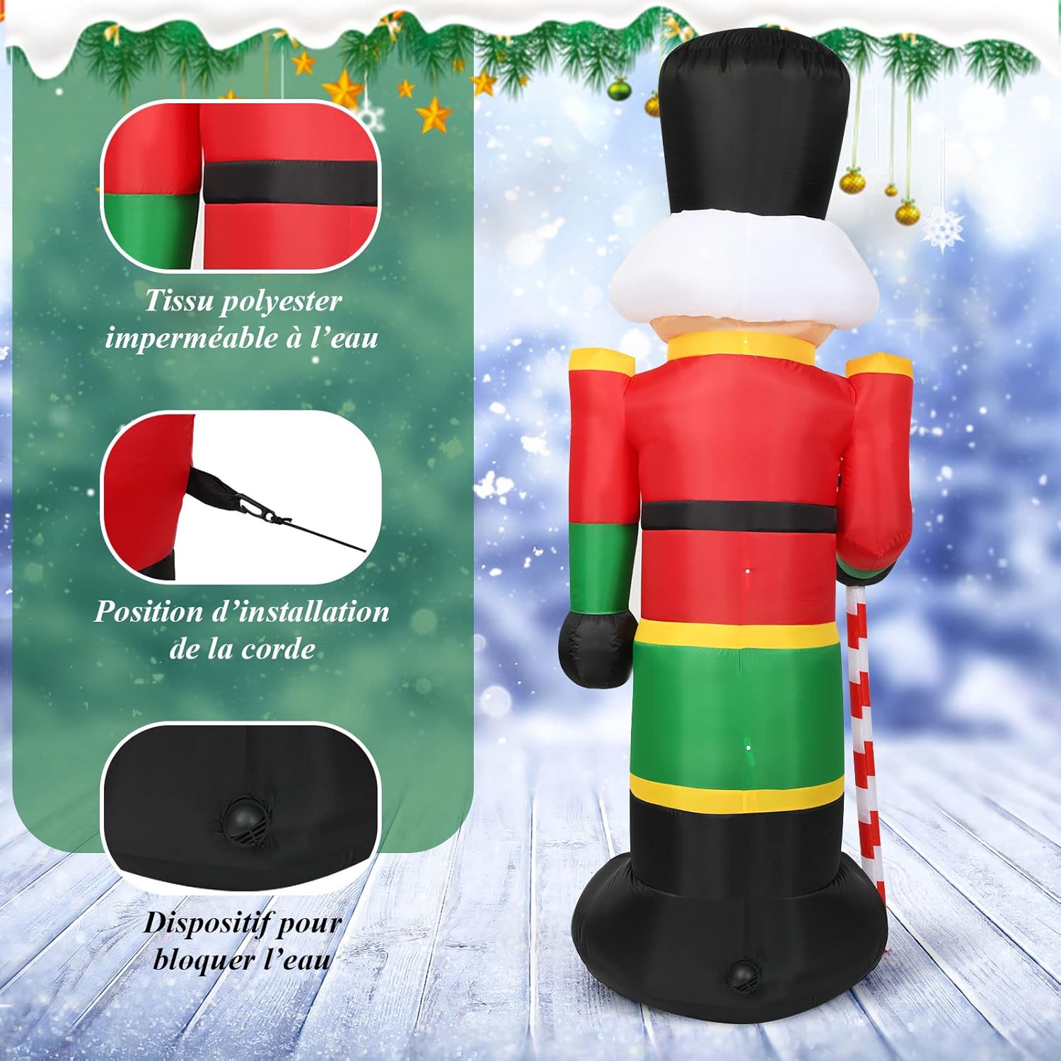 Effet Lumineux Époustouflant : Avec 100 lumières LED de couleur blanc chaud, ce casse-noisette de Noël illuminera votre chemin et ajoutera une ambiance festive. Éblouissez Vos Fêtes : Faites sensation avec ce soldat casse-noisette nutcracker 3D de 185 cm de haut, mettant en avant un charmant tambour traditionnel. Ajoutez une touche de magie et d’esprit festif à votre décor de Noël qui captivera tous les regards Description du produit Description : Créez une Ambiance Festive Époustouflante pour Votre Fête de Noël ! Il est livré avec un adaptateur sécurisé et un cordon d'alimentation de 5 m de long. Il sera un excellent ajout à votre décoration festive. Utilisation Polyvalente : Le casse-noisette de Noël peut être utilisé à l'intérieur ou à l'extérieur, adapté pour décorer votre maison, votre porche, votre cour, votre devanture de magasin et bien plus encore. Mesurant 31 x 50 x 166 cm, elle est à la fois imposante et polyvalente. 170 Cm Soldat Casse-Noisette Lumineux, Decoration Noel Exterieur Interieur 110 Lumieres Led Costume Exquis 4 Piquets De Sol Pour Salon Jardin 98728400 Apparence Mignonne et Éclatante : Le casse-noisette est vêtu d'un manteau jaune brillant et de pantalons rouges, tenant une épée argentée et portant un haut-de-forme coloré, ce qui en fait un élément remarquable de votre décoration de Noël. Cette figurine géante de casse-noisettes de Noël est un véritable atout pour toutes les occasions, que ce soit pour Noël, des événements, des cérémonies, des fêtes ou des décorations commerciales. Handling precaution: éloigner des enfants. Lumières LED blanches 1000, 20m 2m de câble | Leroy Merlin Noel Gonflable Geant Lulalula Soldat Casse-noisette Gonflable De 2,4 M Avec 3 Lumières LED - Décoration De Noël - Soldat Casse-noisette Auto-gonflant Pour Pelouse, Cour, Porche, Fête De Noël à L'extérieur Casse Grâce à son apparence attrayante et à ses lumières LED scintillantes, ce soldat casse-noisettes ajoutera une touche de joie et de lumière à vos soirées.