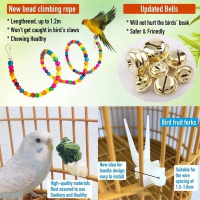 Jouets Avec Clochette Pour Oiseaux Acheter 8 Pièces Perruche Calopsitte Jouets Pour Oiseaux, Cloche Jouets Pour Bec Et Divertissement Jouets à mâcher pour oiseaux : types de jeux, et ce pour animaux de compagnie peut pour eux, pour oiseau suspendu Description du produit Contenu du colis : 2 jouets pour perroquet. Caractéristiques : - Couleur : os de seiche de couleur assortie. - Matériau : rotin, papier, conures. - Dimensions : environ 39 x 6 x 4 cm. - Avec balles pratiques pour animaux de compagnie. - Évitez que votre animal de compagnie broie le nid, les meubles ou la cage à mâcher. - Un excellent jouet pour votre petit animal de... HAPINARY 2 pièces Jouets à Mâcher Rattan pour Perroquets Accessoires Suspendus pour Oiseaux avec Petite Cloche Jouets de Jeu et Amusants pour Oiseaux de Compagnie Informations marchandises pour oiseau Ce pour oiseau peut facilement attirer l'attention des oiseaux, laisser rester occupés et excités, ne plus se et ennuyeux. Jouets à mâcher pour perroquets oiseaux : apportera du à vos perroquets oiseaux, rendra plus en cage, à mâcher pour oiseaux perroquets Vvikizy Ensemble de jouets oiseaux perroquets 8 Paquets Jouets Jouets pour perroquets petits perroquets : une bonne décoration pour la cage du perroquet, améliorant l'environnement de vie, à mâcher pour oiseaux des packages 2 x jouets pour perroquets Caractéristiques -Matériau : boule de rotin, à picorer pour oiseaux. -Informations : Boule de vigne pour perroquet -Couleur : Jouets à mâcher colorés en forme d'oiseau. Jouets à mâcher pour perroquets, totalement sûrs pour vos animaux. - Convient à tous types de perroquets et d'oiseaux. Jouets à déchirer pour perroquet Idéal oiseau de compagnie, crée un environnement et sain pour la de l'animal à mordre pour perroquet et à l'usure pour oiseau de compagnie. -Taille : environ 21,00 x 11,00 x 11,00 cm/8,25 x 4,32 x 4,32 , à mâcher pour perroquets et oiseaux.
