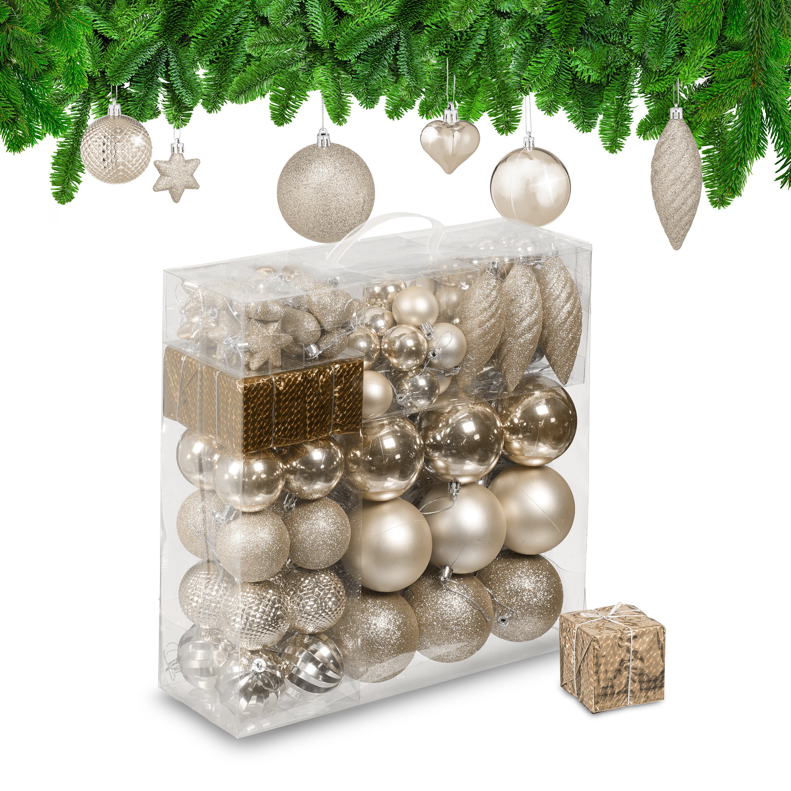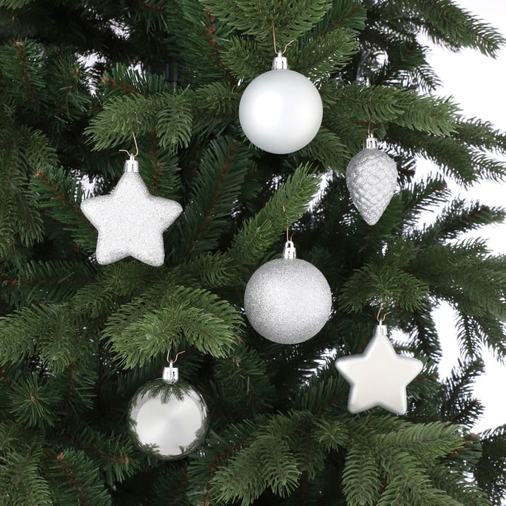 Créez un décor enchanteur dans votre salon et émerveillez petits et grands avec un sapin magnifiquement orné ! Large variété de produits Étoiles H x L x P : env., 5 x 4 x 1,5 cm Petites boules H x D : env., 5 x 4 cm Relaxdays est une entreprise de e-Commerce au cœur de l'Europe spécialisée dans l'aménagement d'intérieur. Détails : décoration de sapin incassable en plastique - Diamètre des boules : env., 3, 4, 6 et 8 cm Dimensions boîte de rangement : env., 36 x 36 x 12 cm , Poids total : env., 800 g , Matériau : plastique Lot XXL : grand set de déco de Noël comprenant des boules, cœurs, étoiles, cadeaux et une guirlande Décoration festive pour sapin de Noël Pour une décoration festive de votre sapin Décoratif : ornements de sapin de Noël pour un arbre magnifiquement décoré et de belles fêtes Décoration Sapin Noël Noir Relaxdays , Lot De 110, En Plastique, D : 6 Cm, Décoration De Sapin, Avec Guirlande, Rose Fuchsia - Maison Boules De Noël Boules de Noël élégantes en lot de 110 · En plastique durable qui ne se casse pas · Boules au design scintillant, luisant et mat · Contenu de livraison Festif : boules de Noël noires pour la décoration du sapin - En lot de 110 pratique Plongez votre maison dans une véritable ambiance de Noël avec ce lot de 110 ornements de Noël décoratifs. Les boules aux finitions mates, brillantes et scintillantes s'accrochent facilement grâce à la ficelle incluse. Fabriquées en plastique durable, elles ne se cassent pas et capturent magnifiquement la lumière du sapin Grandes boules H x D : env., 9 x 8 cm Pommes de pin H x D : env., 12,5 x 4 cm, Cadeau H x L : env., 6 x 6 cm, Guirlande L : env., 2 cm Boules moyennes H x D : env., 7 x 6 cm Décorations de sapin de Noël marron Pour une ambiance de fête réussie Fabriquées en plastique durable, elles ne se cassent pas et capturent magnifiquement la lumière du sapin. Contenu de livraison 9x grandes boules, 16x boules moyennes, 18x petites boules, 32x mini boules, 10x cœurs, 10 étoiles, 8x guirlandes, 4x cadeaux, 3x pommes de pin Respect des standards européens