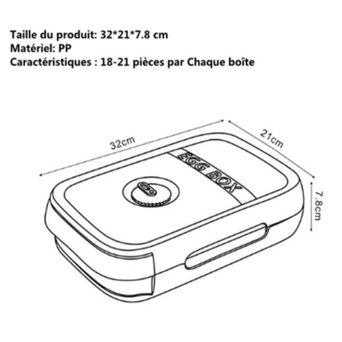 Les sections individuelles permettront à vos œufs d'éviter les bosses, fissures, meurtrissures et dommages. Gardez votre frigo organisé sans œufs en vrac grâce à ce récipient de stockage. Le plateau organisateur dispose de 18 compartiments individuels et est livré avec un couvercle qui affiche le mois et le jour désirés. Cependant, si ce n’est pas le cas, veuillez nous contacter et nous vous rembourserons PRÉSERVER LA FRAÎCHEUR DES ŒUFS : Cette boite a oeuf est livrée avec un couvercle à date pour préserver leur fraîcheur et régler la date de péremption ; Le couvercle protège de la saleté d’entrer et les trous individuels permettent d’éviter la casse Conservation œufs Frais Belle Vous Boite A Oeufs Frigo Avec Couverlce à Date Range En Plastique Sans Bpa 18 Trous Porte Oeuf Portable Empilable Choix Du Jour Mois Transparent 1072936293 Distributeur Oeuf Ce qui est inclus : -1 x Boite oeuf avec couvercle à date. COMPACTE & EMPILABLE : Gardez votre cuisine, réfrigérateur, garde-manger ou table à manger propre et bien rangé avec ce range oeuf peu encombrant ; Empilable pour un gain de place, ce support compact permet d’emporter vos œufs en pique-niques, au camping ou réunions de famille Ce récipient de conservation des œufs est livré avec un couvercle minuteur pour aider à préserver la fraîcheur de vos œufs. STOCKAGE DES ŒUFS : Avec cette boite à oeufs, gardez votre frigo organisé, fini les œufs en vrac ; Le plateau organisateur possède 18 emplacements individuels pour stocker 18 œufs et mesure L18 x L32,5 x H9 cm Nos boîtes d’œufs avec compartiments ajustables et séparateurs sont faites pour vous et rendent le tri et l’organisation de vos œufs un jeu d’enfant Belle Vous Boite a Oeufs en Plastique avec Couvercle à Date pour Réfrigérateur. Vous pouvez régler la date de péremption de vos œufs et le couvercle évitera à la poussière et la saleté d'entrer. Dimensions : -La boîte de rangement complète mesure : L18 x L32,5 x H9 cm. La boîte est transparente, ce qui signifie que vous pouvez facilement visualiser le contenu et surveiller vos niveaux d'approvisionnement. Avis (0 avis)Belle Vous Boite a Oeufs Frigo avec Couverlce à Date - Range Oeufs Frigo en Plastique Sans BPA 18 Trous - Porte Oeuf Frigo [S477] Ce produit n'est toujours pas évalué Boite a Oeufs Frigo, 32 Grilles Tiroir à œufs de Rangement Transparent Notre boîte est empilable, vous offrant ainsi plus d'espace pour la nourriture.