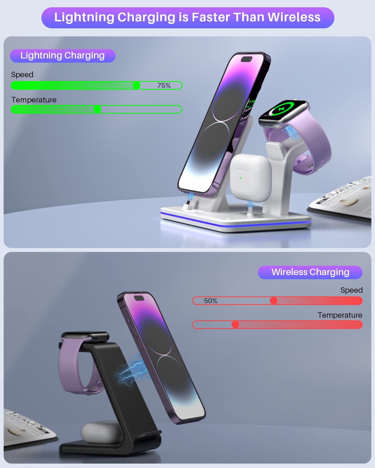 la technologie du protect intelligent multifonctionnelle assure le contrôle de la température, la protection contre les surtensions et la prévention des courts-circuits, afin de garantir la sécurité lors de la charge. Livré avec un adaptateur 18W 9V/2A QC3., 0 et un câble de type C&Usb A,qui peuvent fournir jusqu'à 15 W de puissance à un téléphone portable et charger jusqu'à quatre fois plus vite que les chargeurs sans fil traditionnels. Nous avons analysons tous les produits en chargeurs à induction pour téléphones portables de la marque HOIDOKLY et trouvons les 18 meilleurs choix pour vous. Lisez l'avis HOIDOKLY avant d'acheter Chargeur à Induction Longue Distance | Boutique KT ⚡【Contenu de l'emballage et Garantie】Package: 1 x 3 en 1 Chargeur sans fil, 1 x Câble de charge iwatch (préinstallé dans la station de charge), 1 x Câble de charge AirPods (préinstallé dans la station de charge), 1 x 18W QC3., 0 Adaptateur, 1x User Manual. Chargeur Induction 10W Rapide | Chargeur sans fil | Kuulaa Tech Nous offrons 12 heures de réponse service à la clientèle amical. Si vous avez des questions, n'hésitez pas à nous contacter. Station Charge Sans Fil 3 En 1 Hoidokly Chargeur Sans Fil 2 En1 Chargeur Induction Station De Charge Compatible Avec Galaxy S22/S21/S20/Note 20/10, IPhone 14/14 Plus/13/12 Pro /12/11/8, Galaxy Watch/Active/Buds/Gear 3, AirPods Pro Station Charge 3 En 1 IPhone ⚡【Chargement Sans Fil Sécurisé】Ce Chargeur à Induction est certifié CE, RoHS, FCC. Hoidokly Chargeur sans Fil 3 en 1 Contenu du colis: 1 x Station de charge sans fil 1 x Station de charge AirPods Pro/3/2/1 & iWatch 1 x Câble de charge AirPods (inclus dans la base et pré-installé) 1 x Câble de charge Apple Watch(inclus dans la base et pré-installé) 1 x QC3., 0 Adaptateur 1 x Câble de charge USB 1 x Manuel d'utilisation ⚡【Chargeur Sans fil 3 en 1】Hoidokly 3 en 1 station de charge inductivea des doubles bobines intégrées,qui couvriront plus efficacement la zone de charge sans fil pour une puissance directionnelle complète.