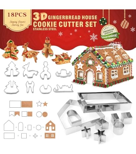 Plein d'éléments de Noël, ajoutez plus de joie à votre Noël avec ce jeu d'emporte-pièces de Noël ! Utilisez les emporte-pièces pour faire des biscuits de différentes formes, après la cuisson, utilisez une poche à douille remplie de crème pour assembler les biscuits et dessiner de jolis motifs sur la maison en pain d'épice, une grande œuvre est née ! Modèles de Noël : Ces emporte-pièces de Noël présentent de nombreux éléments sur le thème de Noël, y compris le Père Noël, le bonhomme de neige, le flocon de neige, le renne, la chaussette, l'arbre de Noël, le bonhomme en pain d'épices et plus encore 28PCS Acier Inoxydable Biscuit Moule, 3D Noël Emporte-Pièces, Maison... En tant qu'ustensiles de cuisine de Noël pouvant être réutilisés pendant de nombreuses années, ils peuvent être lavés à la main ou placés dans le lave-vaisselle. Lot de 10 EmportePièces,Emporte Pièces Noël,Forme Biscuit Noel CONVIENT À DE NOMBREUSES OCCASIONS : Notre kit d'emporte-pièces pour maison en pain d'épice convient à diverses occasions, comme Noël, l'utilisation familiale, la fête d'anniversaire, la Saint-Valentin, Thanksgiving, les anniversaires, etc. Vous pouvez également réaliser des décorations de gâteaux, comme des garnitures de gâteaux ou des plaques décoratives. Maison Pain D'épice MIUTME 5 Pièces Ensemble D'emporte-pièces De Noël,Emporte-pièce En Acier Inoxydable,Moule à Biscuits Patisserie Arbre De Noël,Renne, Bonhomme De Neige,Flocon De Neige,Bonhomme De Pain D'épice Emporte Piece 3d BIEN FAIT, NE FAIT PAS MAL AUX MAINS : Fabriqué en acier inoxydable de qualité alimentaire, nos emporte-pièces de Noël ont des joints lisses entièrement soudés, le haut de chaque emporte-pièce de Noël a un bord roulé pour protéger les mains des enfants contre les blessures, et le bord inférieur est propre pour faciliter la découpe de biscuits de toutes formes. Jeu de moules à biscuits pour maison en pain d'épice JEU COMPLET D'EMPORTE-PIÈCES POUR BISCUITS DE NOËL : Le set d'emporte-pièces pour biscuits de Noël comprend 18 emporte-pièces en acier inoxydable (maison en pain d'épice, bonhomme de neige, traîneau, renne, sapin de Noël) et 50 poches à douille de glaçage jetables.