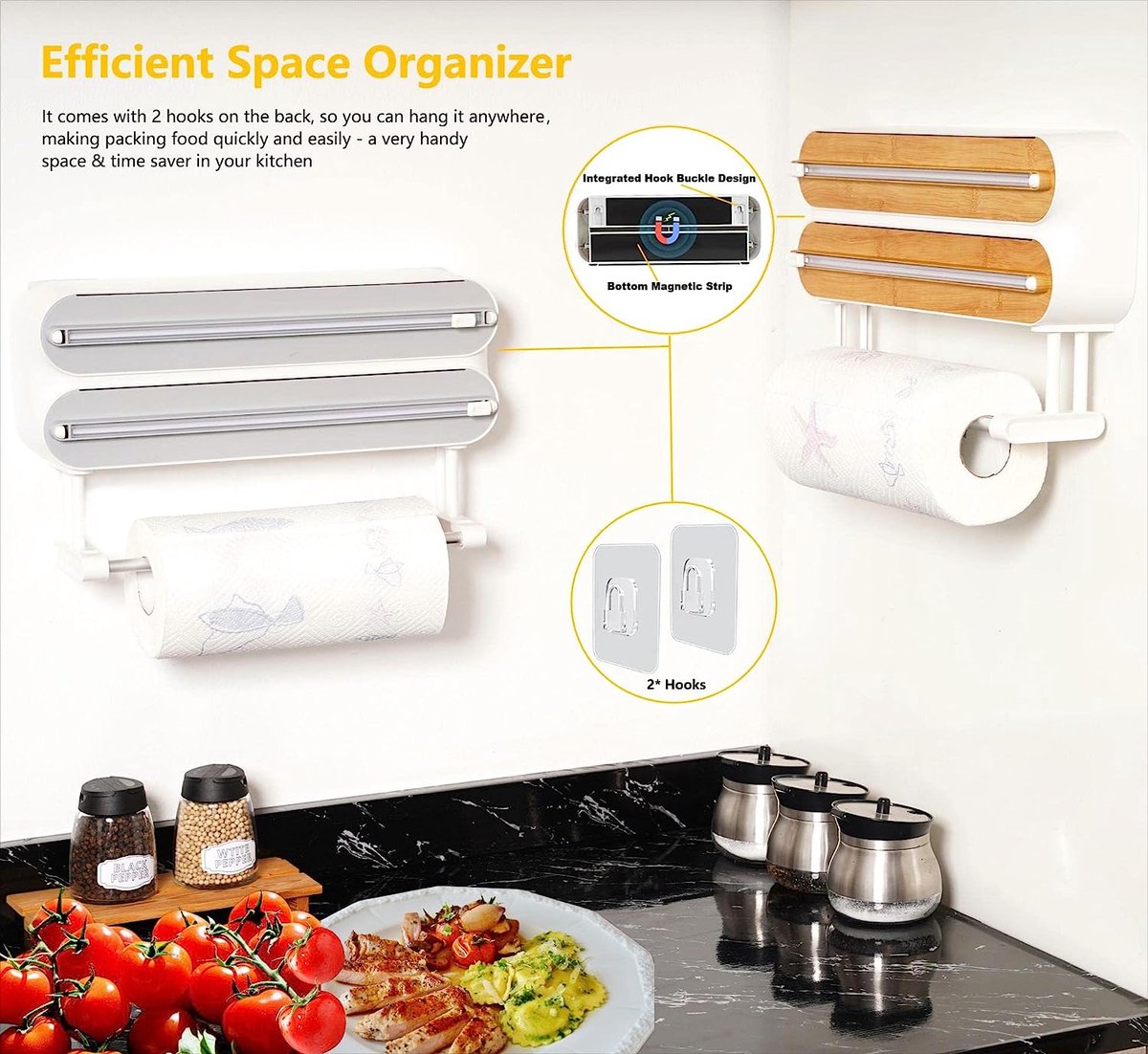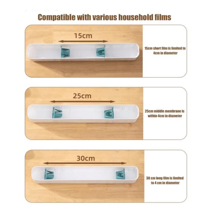 Il permet une coupe facile et rapide MULTIFONCTIONNEL : Un accessoire essentiel pour assurer le bon fonctionnement de votre cuisine, le distributeur de film plastique est polyvalent et peut contenir du film plastique, du parchemin ciré et du papier d'aluminium Matériau : polypropylène. Il peut accueillir différentes tailles de film plastique, de feuille d'aluminium et de papier sulfurisé, ce qui en fait un distributeur de papier sulfurisé pratique et un distributeur de papier d'aluminium avec cutter Ce cutter en plastique est conçu pour un usage domestique Il conserve sa forme même après une utilisation à long terme, et nous offrons un service après-vente pour toute demande client Couleur : bleu, blanc, vert. Lot de 2 distributeurs de film plastique, coupe-film Coupe de sécurité : conçu pour garantir la sécurité et éviter les coupures accidentelles des doigts, il est livré avec une lame coulissante bidirectionnelle qui coupe le film étirable proprement et sans effort. Taille : conforme à l'image. Il offre des options de rangement peu encombrantes et pratiques Relaxdays Distributeur film alimentaire, HxLxP : 6x35x7 cm, dérouleur... Dérouleur Papier Cuisson Aluminium Blanc - Distributeur Film Alimentaire Magnétique - Coupe-capsules Distributeur Film étirable Professionnel Contenu de l'emballage : 1 séparateur en plastique.