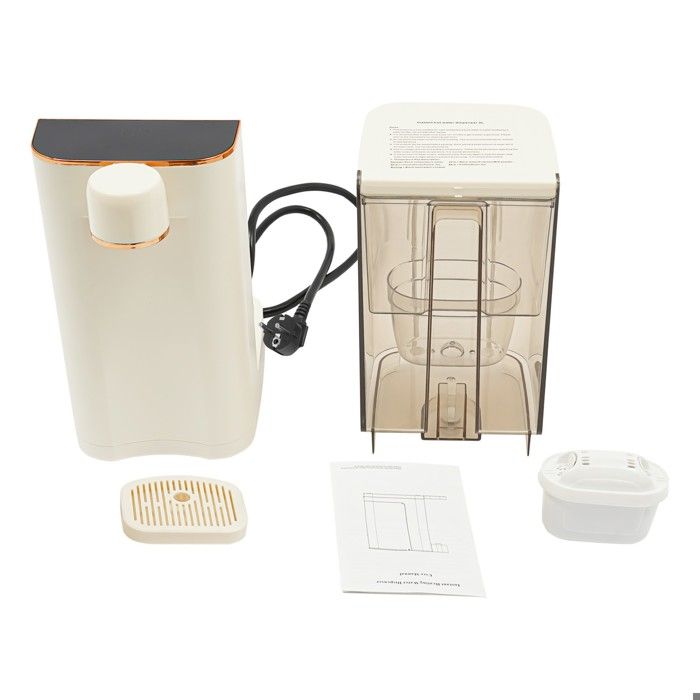 Plusieurs réglages de température, fonction de distribution d'eau quantitative, plusieurs précautions de sécurité et design tactile rendent ce produit polyvalent et facile à utiliser, et la haute performance et la technologie de chauffage à couche épaisse de terre rare rendent ce produit puissant et efficace. 1 manuel d'utilisation en anglais., Indications : 1., Veuillez lire attentivement le manuel d'utilisation et les étiquettes avant utilisation et respecter les précautions de sécurité., 2., Veuillez noter que le produit ne contient pas de tuyau de pompe. Veuillez ne pas ajouter d'autres liquides., 4., Il est recommandé de laver l'appareil tous les deux mois pour une meilleure expérience. Tension : 220 V Puissance : 2000 W. Réservoir digital d'eau chaude instantanée - inc. Distribution Longueur du câble d'alimentation : 1 m. Elle est compatible avec de nombreux types et différentes capacités de bouteilles d'eau. Type d'affichage : LED (affichage de la température) Source d'alimentation : électrique avec câble Prise : norme européenne. Protection de sécurité : elle dispose d'une protection contre la surchauffe, d'une protection contre les fuites et d'une protection contre les incendies à sec pour assurer la sécurité pendant l'utilisation. Caractéristiques techniques : Matériau : polypropylène. Affichage LED : affiche la température pour mieux comprendre la température de l'eau. Sortie d'eau unique : 150 ml, 350 ml, 500 ml. Il peut y avoir des variations de débit d'eau et de température de l'eau. L'aspect général est élégant et beau, et il s'intègre parfaitement dans la décoration d'intérieur moderne, ce qui en fait un choix idéal pour votre vie quotidienne. Fontaine à Eau Chauffante 3L Bureau Appareil Eau Chaude Maison Distributeur Eau Chaude Instantanée 3L - 5 Températures Réglables - Sécurité Enfant - Pour Maison Et Bureau Eau Chaude Rapide Fontaine Avec Filtre Charbon Contenu de la livraison : 1 distributeur d'eau électrique., 1 filtre., 1 réservoir d'eau., 1 bol d'eau. Filtre à charbon actif : il filtre les impuretés de l'eau et assure une eau potable plus saine. Veuillez respecter les instructions de nettoyage., 5., Veuillez ne pas toucher la sortie d'eau pour éviter les brûlures. Ce produit ne doit pas être utilisé seul par les enfants., 6., Ce produit est testé avant l'emballage, il y aura une petite quantité d'eau dans le réservoir d'eau. Dimensions du produit : 27 x 19 x 26 cm. Vous pouvez choisir entre 5,07 oz, 11,84 oz et 16,9 oz de distribution d'eau quantitative pour éviter le gaspillage. Vous pouvez obtenir l'alimentation en eau en bouteille en achetant un tuyau de pompe supplémentaire., 3., Ce produit ne convient que pour l'eau pure à température ambiante ou pour l'eau purifiée par un purificateur d'eau. Couleur : blanc laiteux + couleur thé Type de montage : plateau de table Assemblage nécessaire : oui. Distributeur d'eau chaude, 3 l, bouillettes électriques, distributeur instantané d'eau chaude, distributeur d'eau chaude, pour y compris les appartements, les bureaux, les écoles et d'autres endroits Temps de chauffe : 3 secondes (pour référence) Méthode de chauffage : couche épaisse de terre rare Capacité du réservoir d'eau : 3 l. Grande capacité avec un design compact : le réservoir d'eau de 3 litres couvre les besoins quotidiens, tandis que le design peu encombrant est idéal pour la cuisine, le bureau ou les petites pièces