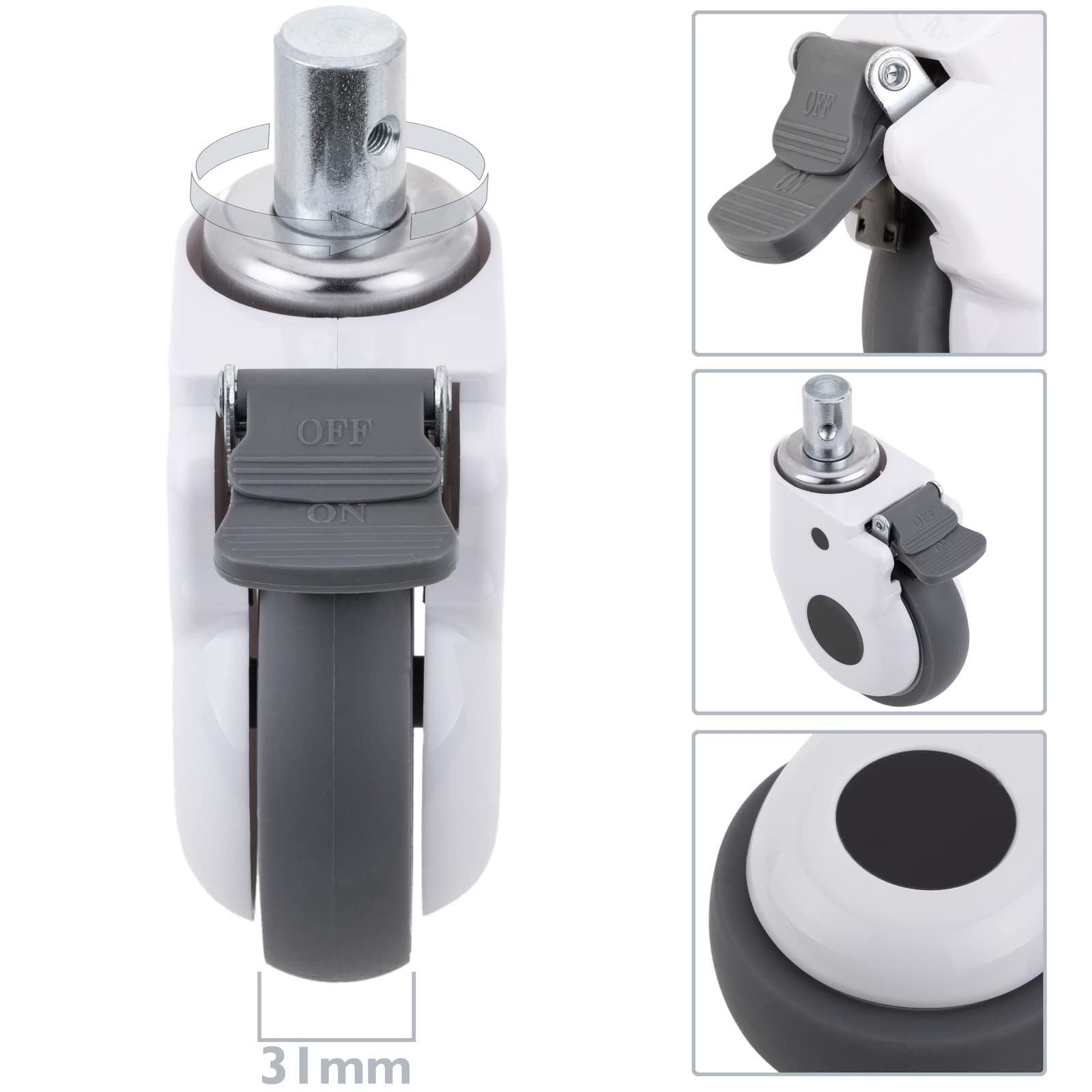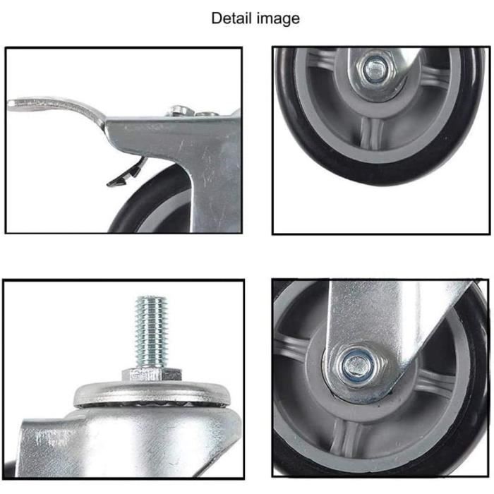 Quantité par paquet: 4pcs Numéro de modèle: Pvc-120Protection environnementaleroues en PVC, Type: Meubles Caster Fournitures de bricolage: Travail du bois Roues Avec Frein M12 Résistance à L'usure, Roulettes Médicales/meubles/roues En PU, 3 Pouces, Vis M12x25, Portable Muet, For Chariot D'hôpital 4 Pièces Roulettes Pivotantes Frein 26.90 - 28.90 $ | Aperçu complet Roulettes modèle PU de LUBAN Store sur Aliexpress | Roulettes/roues médicales 3 pouces blanc gris, avec frein, vis M12x25, muet portable, équipement électronique pour chariot d'hôpital Hauteur totale installée : 120 mm (4 - 3/4 pouces) Fixation : plaque pivotante avec frein bidirectionnel Capacité de charge : 95 kg (209 lb) Matériel : TPR Des milliers de modèles de roues disponibles Il existe des milliers de modèles de roues et nous sommes en mesure d'effectuer des recherches afin de répondre à tous vos besoins ARAMOX roulette pivotante 2 pouces 4pcs roulettes pivotantes de 2