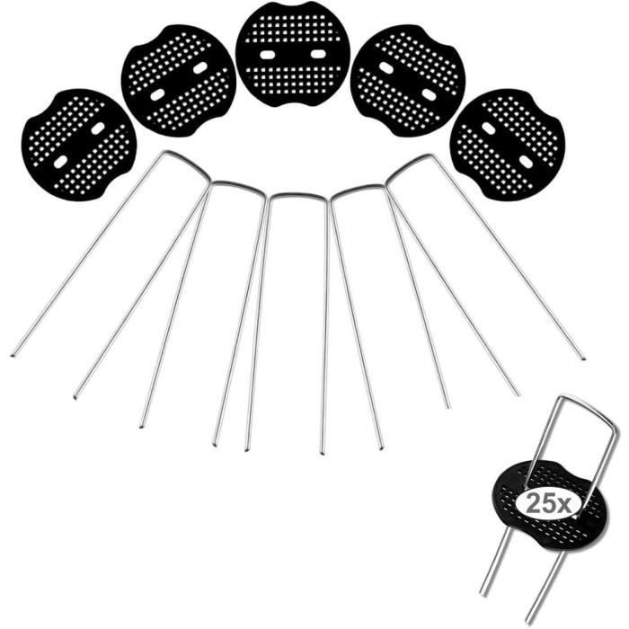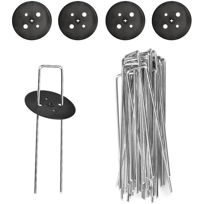 Design en U Stable : La conception robuste en forme de U avec des extrémités inclinées répartit uniformément la force, assurant une fixation sécurisée et une tension optimale du sol. 30pcs Clous en U en Acier Galvanisé - Piquets de Sol Extérieur pour Serre, Gazon, Toile Anti-Mauvaises Herbes - Fixation Durable Jardin. Vendu par Maison Jardin Elles ne se déforment pas, assurant une fixation solide et durable., 2., Design en U Efficace : La forme en U stable avec pointes inclinées assure une répartition uniforme de la pression, évitant les déchirures et garantissant une tension parfaite du sol. L'outil crochet inclus facilite la pose et le retrait. Contenu du Colis : Vous recevez 50 pieux de terre pour toile anti-mauvaises herbes (4x15 cm) et 50 rondelles noires. Applications Multiples : Idéales pour fixer de manière sécurisée les toiles anti-mauvaises herbes, les filets paysagers, les clôtures, les géotextiles, les gaines de jardinage et bien d'autres matériaux au sol. En raison des réglages d'écran, la couleur réelle du produit peut légèrement différer des images. Agrafes Pour Toile De Paillage ESTUSR Lot De 50 Piquets D'ancrage De Jardin En Acier Galvanisu00e9 En Forme De U Pour Membrane De Mauvaises Herbes, Gazon Artificiel, Tapis, Tissu Paysager Paillage Jardin Matériau Haute Qualité : Nos ancres de sol sont fabriquées en fil d'acier galvanisé de haute qualité, offrant une excellente résistance à la corrosion et à la rouille. Caractéristiques : Matériau : Acier Galvanisé Couleur : Argent Dimensions : 4 cm (largeur) x 15 cm (longueur) Contenu de l'Emballage : 50 x Ancres de Sol en U 50 x Rondelles Noires Notes : Les mesures sont prises manuellement, une légère marge d'erreur (1-3 cm) est possible. Merci pour votre compréhension. Solides et durables, ces piquets en U en acier galvanisé (épaisseur 3 mm) résistent à la rouille et aux intempéries. Longueur : 150 mm. Idéals pour fixer... Ancres Anti-sol Pour Toile Anti-mauvaises Herbes, Piquets En Acier Galvanise Dans Un Ensemble Pour La Fixation De Toison Contre Les Mauvaises Herbes Feuille De Mauvaises Herbes Ou Pour Le Camping Yerdgary 2463022728 L Merci de vous référer au produit physique.