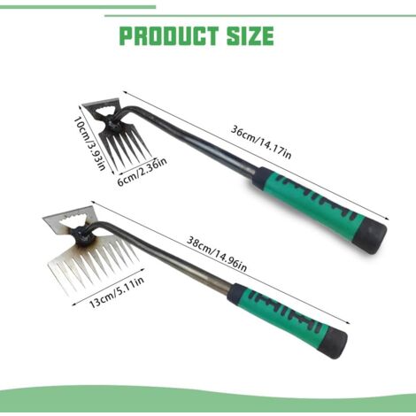 【Conception allégée】Desherbeur manuel en acier inoxydable avec des pointes acérées pour une pénétration facile dans le sol. Le grattoir à joint en L est idéal pour nettoyer les surfaces et les joints, par exemple pour éliminer la mousse, les mauvaises herbes à racines superficielles et les mauvaises herbes dans les fissures. SKIKHN Desherbeur Manuel, 2 Pièces Arrache Mauvaise Herbe en Acier Inoxydable, 34cm Outil De Désherbage Manuel avec Poignée en Caoutchouc, pour Creuser Désherber Ameublir Paquet de 2 désherbeurs avec poignées : vous recevrez 2 types différents de désherbeurs avec poignées en caoutchouc, la longueur totale est respectivement de 35 cm et 32 cm et la taille de la tête est de 8 x 4 cm Matériau durable : l'outil de Jardinage manuel est fabriqué en acier inoxydable de haute qualité, qui peut cultiver le sol... 【Poignée ergonomique】Le désherbeur manuel en acier inoxydable est doté d'une poignée ergonomique et confortable d'environ 15 cm de long, assurant une bonne prise en main tout en réduisant les frottements et l'inconfort. Désherbeur Manuel en Acier Inoxydable 2 Pièces Arrache Vous pouvez ainsi jardiner toute la journée facilement et confortablement. Il peut être utilisé non seulement pour désherber, mais aussi pour ameublir et fertiliser votre jardin. CSPARKV Lot De 2 Désherbeur À Main Outils,Outil De Désherbage Manuel,Inoxydable Extracteur De Mauvaisesextracteur De Desherbage Pour Jardinoutil De Arrache Mauvaise Herbedesherbage En Acier Inoxyd 86187496 Un autre désherbeur à 4 dents et dents acérées facilite le désherbage. Il convient aux jardins, aux parterres de fleurs, aux potagers et aux plantes d'intérieur., Description du produit 1., Le désherbeur manuel en acier inoxydable comprend deux désherbeurs différents, qui vous permettent de vous débarrasser des mauvaises herbes facilement et sans effort, vous faisant gagner du temps et de l'énergie., 2., Le reste du désherbeur est fabriqué en acier inoxydable de haute qualité, très robuste et résistant à la flexion, et ne rouille pas., 3., La conception à levier et la base élargie réduisent la fatigue de la main et augmentent l'efficacité., 4., Idéal pour éliminer les pissenlits, les chardons, la digitaire sanguine, le mouron des oiseaux et autres mauvaises herbes à racines profondes de votre jardin., 5., Pour les jardiniers amateurs passionnés, le désherbeur manuel en acier inoxydable est un outil utile et un cadeau pratique. Caractéristiques : Matériau : Acier inoxydable 201 Désherbeur : 35 x 14,5 cm, poids : 213 grammes Arracheuse de racines : 35 x 15 cm, poids : 195 grammes Contenu de la livraison : 1 x arrache-mauvaises herbes 1 x arrache-racines 1 x paire de gants de jardinage Mode d'emploi NO