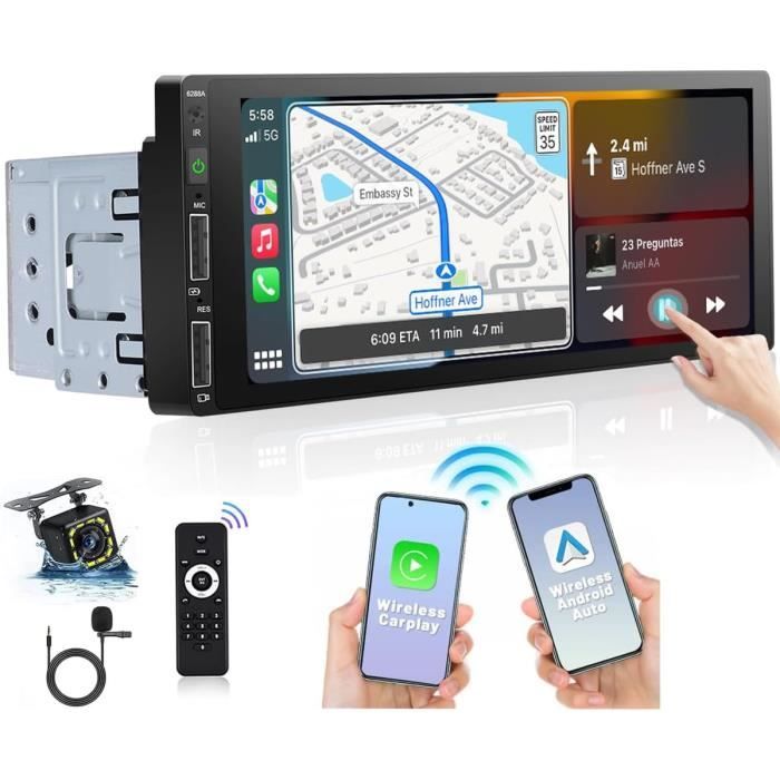 Achetez Autoradio 1 DIN, CarPlay Voiture & Android Auto sans Fil avec Caméra de Recul, Poste Radio Bluetooth Main Libre, 6,36" Écran Tactile, Navigation GPS, Contrôle Vocal, AUX/FM, Mirror Link, USB Type-C Compatible CarPlay et Android Auto filaire/sans fil, offrant un contrôle intuitif depuis l’écran Autoradio écran Tactile 6.36 Pouces Carplay Android Auto Bluetooth, 5" Poste Radio Voiture Écran Tactile 1 DIN Avec Autoradio 1 Din 【Autoradio 1 DIN avec Écran Tactile】Profitez d’un autoradio MRSXWPY 1 DIN avec grand écran tactile HD 6,36, affichage clair et réactif. Compatible avec iOS et Android, idéal pour le divertissement en voiture 【Caméra de recul HD Incluse】Livré avec une caméra de recul HD grand angle pour un stationnement sécurisé et précis. Installation Universelle 1 DIN & Écran Tactile HD 6,36]Convient à la majorité des véhicules avec emplacement 1 DIN. Équipé de ports USB, entrée AUX, et d'un... Radio sans fil Carplay Single DIN avec Android Auto, écran tactile de 6,8 pouces, stéréo de voiture avec Bluetooth, SWC, caméra de recul, lien miroir, FM/RDS, charge rapide, entrée USB Compatible avec la plupart des véhicules 12V-24V Fonction de contrôle vocal pour changer de musique, lancer un appel ou démarrer un itinéraire sans quitter la route des yeux Idéal pour moderniser votre tableau de bord et profiter d’une expérience multimédia fluide dans votre voiture.