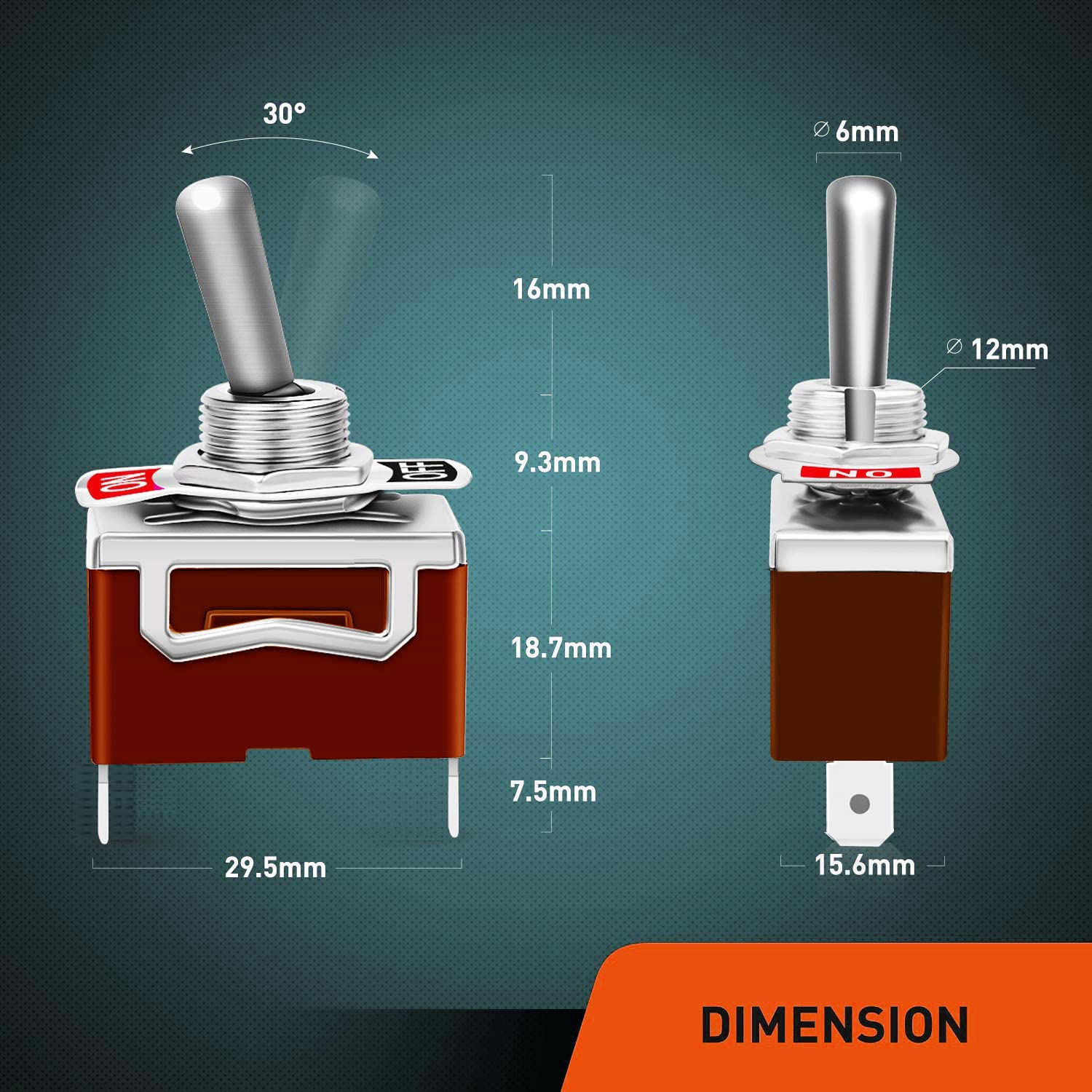 Cet interrupteur peut être utilisé sur des circuits basse tension ou haute tension, idéal pour changer les lumières ou les moteurs. Courant nominal et tension : 12 V CC 25 A - Type de connecteur : SPST / 2 broches de borne Fabriqué en matériau robuste qui garantit une longue durée de vie, facile à installer. 2 x 2 Broches Interrupteur a bascule SPST 16A-250V 20A-125V Chaque interrupteur est livré avec deux écrous hexagonaux, une rondelle plate. SCI R13-2-05 SPST Standard Interrupteur à Bascule EUR 6,95 - PicClick FR Bouton On Off Lot De 2 Interrupteurs à Bascule Marche/arrêt 2 Broches 25 A 12 V Kn3d 101 Interrupteur A Bascule Metallique Marche Arret 12 V 96672122 Lot 2 Interrupteurs Voiture étanches ON, OFF, commutateur à bascule momentané 15A 250V 2 broches 2 Position 12 mm pour l'automobile, l'appareil domestique, le contrôle. Livraison gratuite