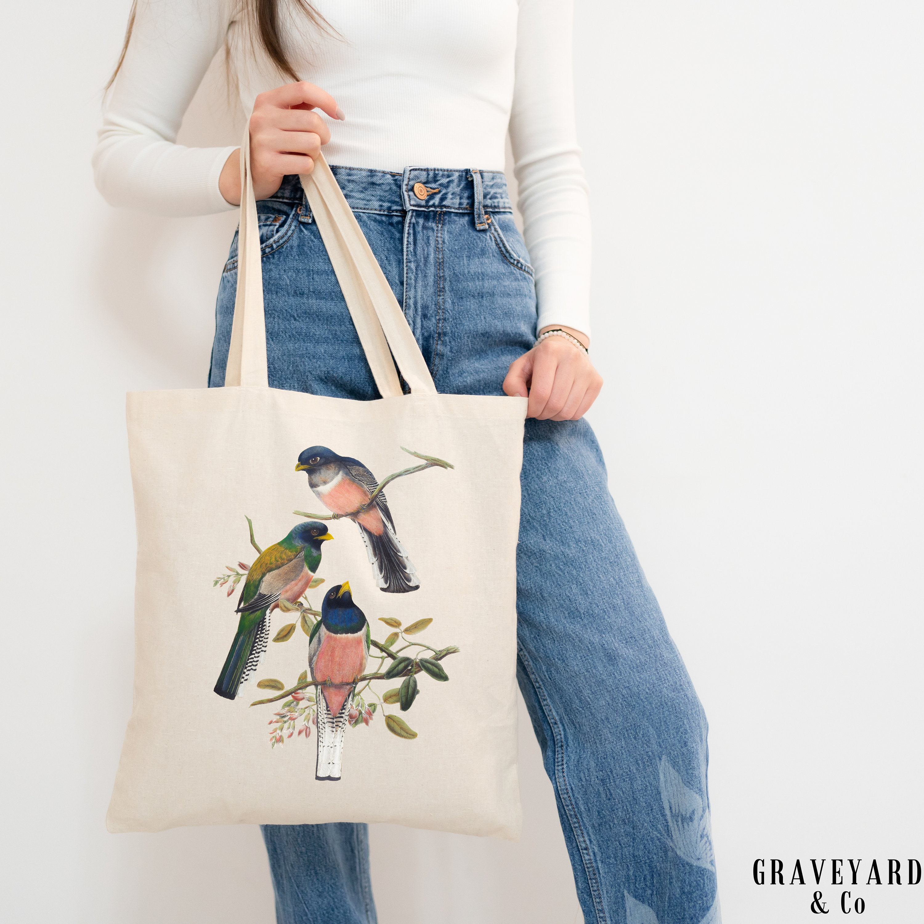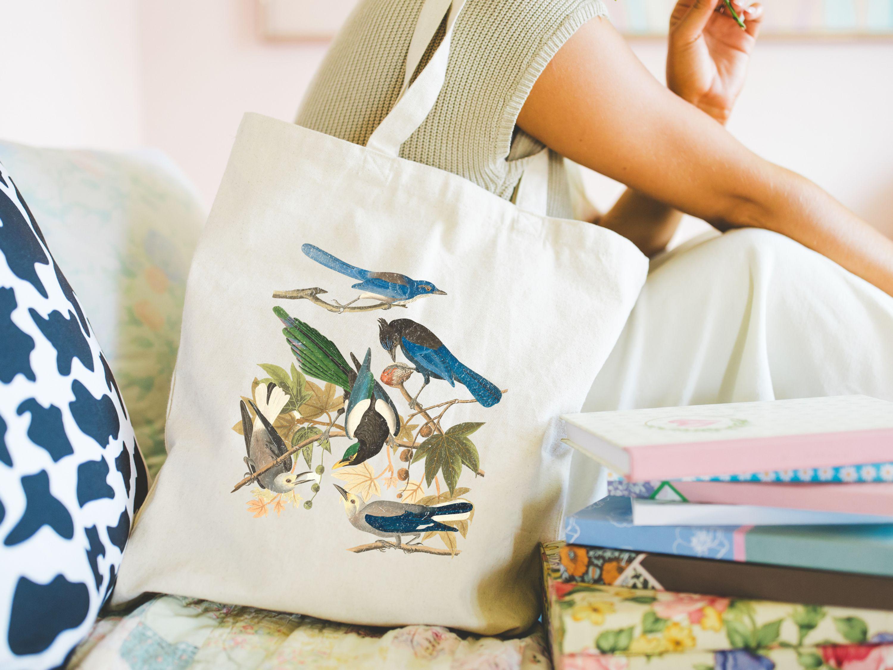 Blue Bird Folk Art Sac Fourre-tout Floral BÉIS 'The Book Tote' in Vintage Floral - Book Tote Bag Idéal pour les étudiants, les amoureux de la nature et tous ceux qui aiment la mode boho ou d'inspiration vintage. Durable et élégant, ce fourre-tout fait un accessoire unique ou un cadeau réfléchi