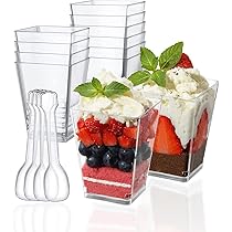Spécifications : Matériau : Plastique Couleur : Transparent Dimensions : environ 5,3 x 5,3 x 3,3 cm Capacité : 60 ml Longueur de la cuillère : 10 cm Contenu : 100 x gobelets à dessert en plastique 100 x cuillères réutilisables - Transparent et de forme ronde moderne, ce gobelet est parfait pour présenter de délicieux desserts tels que gelées, puddings, mousses, etc. Maison - Découvrez notre offre KAHEIGN 100 Pièces Assiettes Apéritives en Plastique avec Cuillères, 6CM Plat de Dégustation Carré Coupelles Transparentes pour 154 50 Sets Tasses Dessert Avec Cuillres Mini Coupes Dessert En Plastique 60Ml 75Ml Diy Petit... [Carré transparent] La tasse est transparente et de conception carrée moderne, parfaite pour présenter de délicieux desserts tels que de la gelée, du pudding, de la mousse, de la crème glacée, du yaourt, etc. Gobelets 75ml Transparents 100 Verrines à Dessert KAHEIGN 75ml - Gobelets Plastique Transparent Pour Apéritif Et Fête Bicchierini Caffè [Taille] Longueur supérieure : 5,3 cm, longueur inférieure : 3,3 cm, hauteur : 3,3 cm, longueur de la cuillère : 10 cm, capacité : 60 ml, un total de 100 gobelets inclus, peut répondre aux besoins de toute célébration de fête [Applicable] Parfait pour les coupes glacées, les smoothies, les fruits, les parfaits, les collations, les shots de gelée, les bagatelles, les salades, etc. Gobelet Plastique Reutilisable Verrine En Plastique Lot De 50 Verrines Transparentes 60ml - Avec Cuillères Verrine Verre 100 Gobelets Carrés 60ml Avec Cuillères - Nettoyage rapide après la fête : lavage à l'eau chaude savonneuse, séchage facile, rangement empilable. Elles conviennent aux mariages, réceptions, fêtes, fêtes, événements traiteur, anniversaires, baby showers et toutes autres occasions ! Caractéristiques : - Fabriqué en plastique cristal PS ultra-résistant, sans BPA, conforme aux normes de la FDA, non toxique et inodore, robuste et durable.