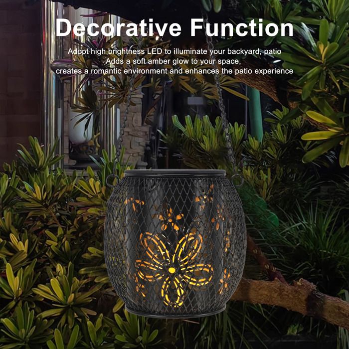 Étanche IP65 : Fabriquées en ABS de haute qualité, ces lampes solaires ont un indice d’étanchéité IP65, résistant à toutes les intempéries. 3 Modes d’Éclairage Intelligents : Ces lanternes murales solaires proposent trois modes d’éclairage adaptés à vos besoins. Lanterne Led Hqynss Lanternes Solaires, Lanternes De Jardin LED Suspendues éclairage Extérieur Solaire Applique murale solaire LED avec détecteur de mouvement et télécommande Elles fonctionnent parfaitement sous la pluie, la neige ou le gel, et leur conception anti-rouille et anti-corrosion assure une durabilité exceptionnelle pour un usage extérieur prolongé. Nous offrons une garantie de service après-vente de 6 mois pour vous garantir une expérience sans souci. Parfaites pour jardin, terrasse, cour, clôture, porche, poulailler, serre ou cabanon. En cas de question, notre équipe s’engage à vous fournir une réponse satisfaisante. Lanternes solaires d'extérieur - 2 pièces - Style bohème - Ampoule LED... Le mode lumière constante offre un éclairage continu toute la nuit, garantissant un espace toujours bien éclairé. Équipées d’un panneau solaire polycristallin de 1200 mAh à grande capacité, elles offrent une efficacité de charge optimale, produisant une lumière chaude de 3000K. Après 6-8 heures de charge au soleil, elles illuminent jusqu’à 12 heures la nuit, avec une fonction d’allumage/extinction automatique du crépuscule à l’aube.